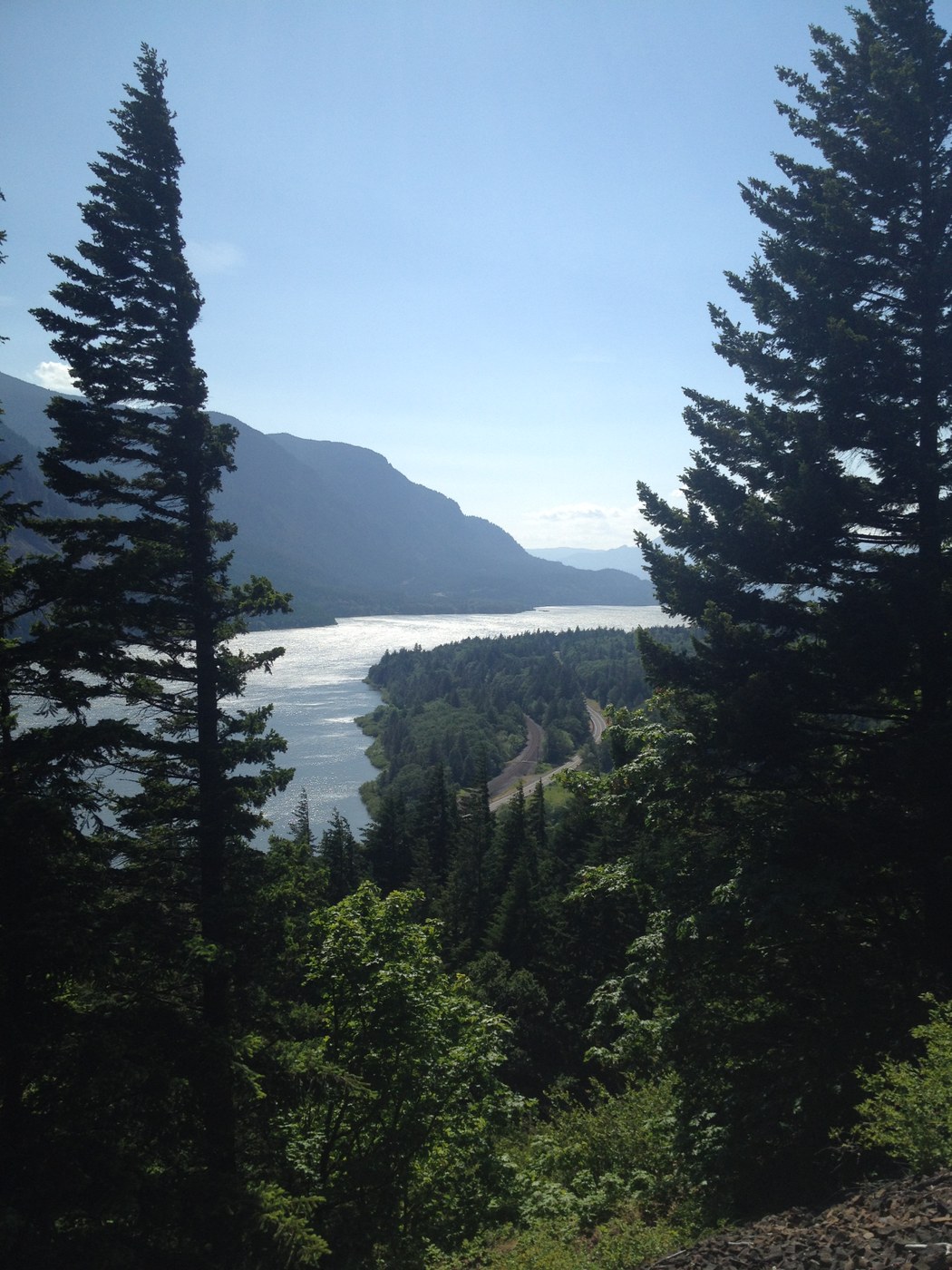 At the top, we were able to see Mount Hood and Mount St. Helens. There were lots of people sitting and enjoying lunches - it was beautiful out! After our lunch, we began the trip back down, continuing our counter clockwise route. We passed the turnoff towards Augspurger Mountain, which looks like fun. The views on that side of the route aren't quite as exciting as on the other side, but there were still great photo ops of the river, flowers, and trees. It was very peaceful. We finished our hike at about 4:15.