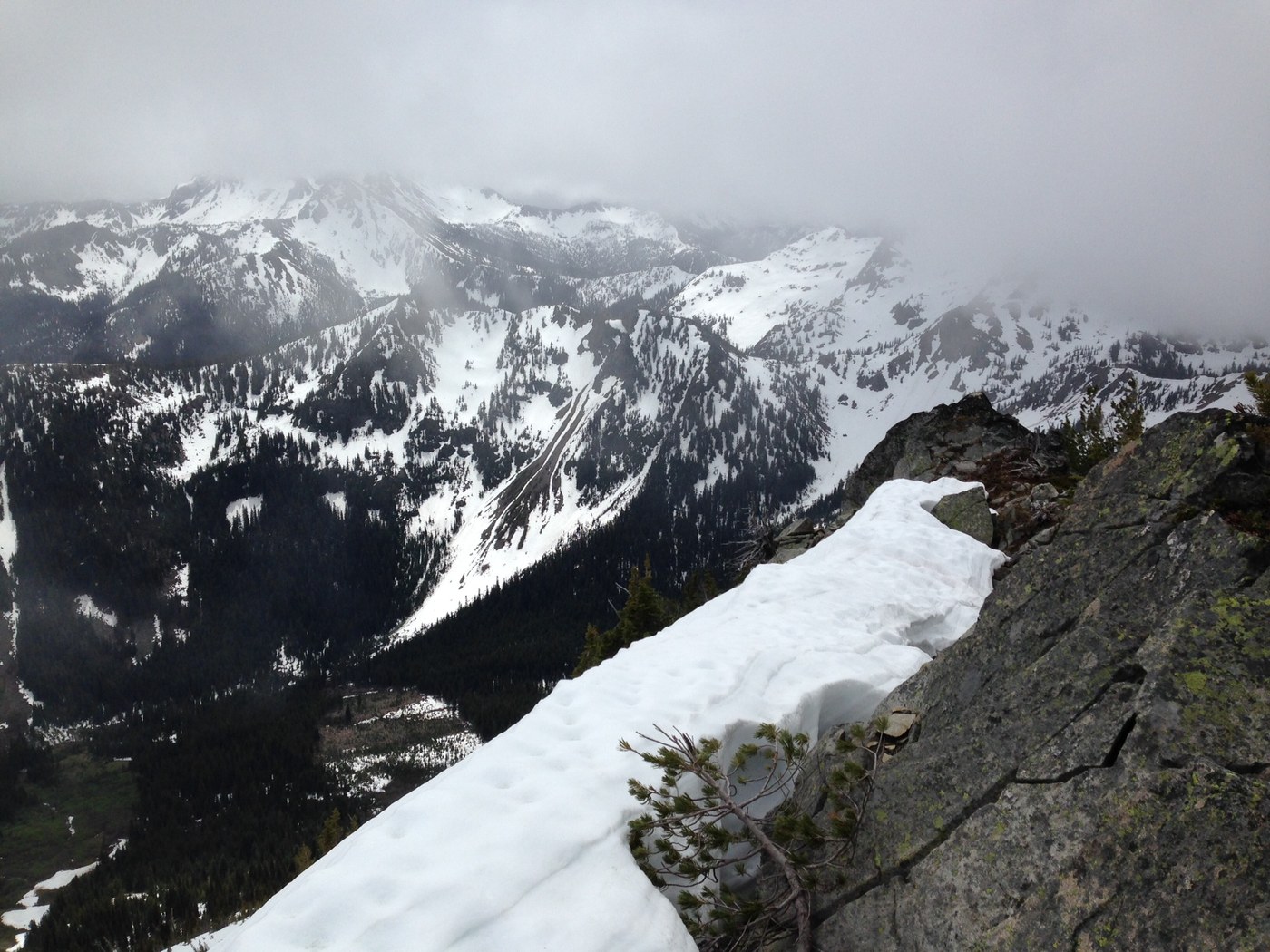 We continued into the basin and then headed up and over Solomon's west ridge where Harding came into view. We dropped down and traversed straight to Harding's south ridge where we enjoyed a long but straight-forward route to its top where a lovely summit register awaited. We then retraced our steps back to Solomon's ridge and headed up the ridge (a little towards the south) to our second lovely summit of the day. After a hearty snack and warm sun break, we dropped straight from the summit into the basin, staying on snow and meandering through the avalanche debris in awe as we descended and eventually found the trail junction. We arrived back at the car at 5:30.