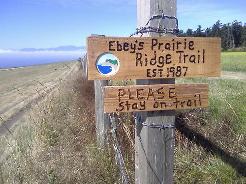 Hiking along the beach, we saw jellyfish, crabs, even part of a cod that something had made a meal of. Not much else though, because the fog was thick while we were down on the beach. Fortunately, the weather had cleared by the time we got back up onto the prairie, and Mount Baker was just sitting on the horizon saying hello.