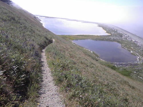 The trail is clearly marked from the Prairie Overlook trailhead and easy to stay on, though at a couple of points along the bluff it splits, and there are a few ways down as it switchbacks to the beach. However, there's only one way that isn't a straight-down sandy slope, so take that one. As far as respecting LNT goes, take the trail that looks like it's the most well-used, at least until the other trails are officially blocked or decommissioned.