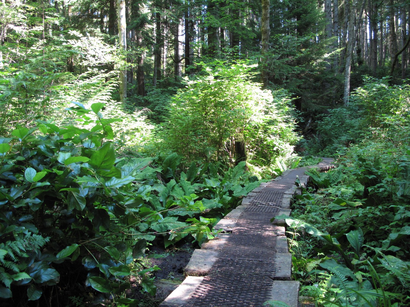 The new signage along the trails dating from last fall's renaming (after Whittaker and Gombu) are nice - very clear. The forest is typical second generation mostly fir though there are some interesting large stands of Devils Club and a neat huge Sword Fern grove along Shy Bear.