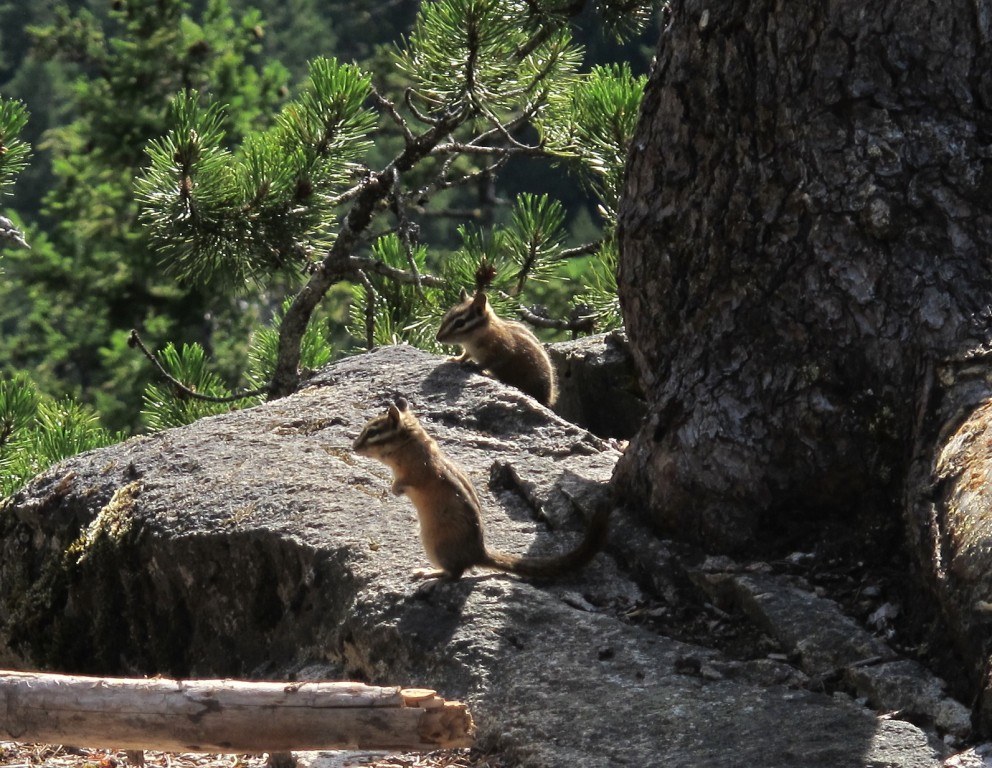 This is a nice short hike at Colonial Creek campground. If you fitness level isn't what it should be (or not what it once was) this is a doable hike in this rugged country. The trail takes off from the left side of the road by the campground. The TH parking is well signed with a wood sign. Wander thru the campground following the signs to Thunder Knob trail. The trail wanders crosses a couple of streams on log footbridges, then wanders thru the woods. Gentle switchbacks take you up past a small pond with nice reflection picture opportunities. As you get higher, notice the change in vegetation from moss and ferns under cedar and Douglass fir to open forest with pine tress and baked lichens. The first overlook has a good view of Davis peak and Diablo lake (reservoir). Guard you trail snack against the cute kid pleasing chipmunks! The second viewpoint is not as good for the lake, but still a few nice 'peak' a boo views thru the trees. We tacked this little hike on after taking the Skagit Boat trip (well worth the bucks). Nice to stop while doing the scenic drive with the kids or out of town company.