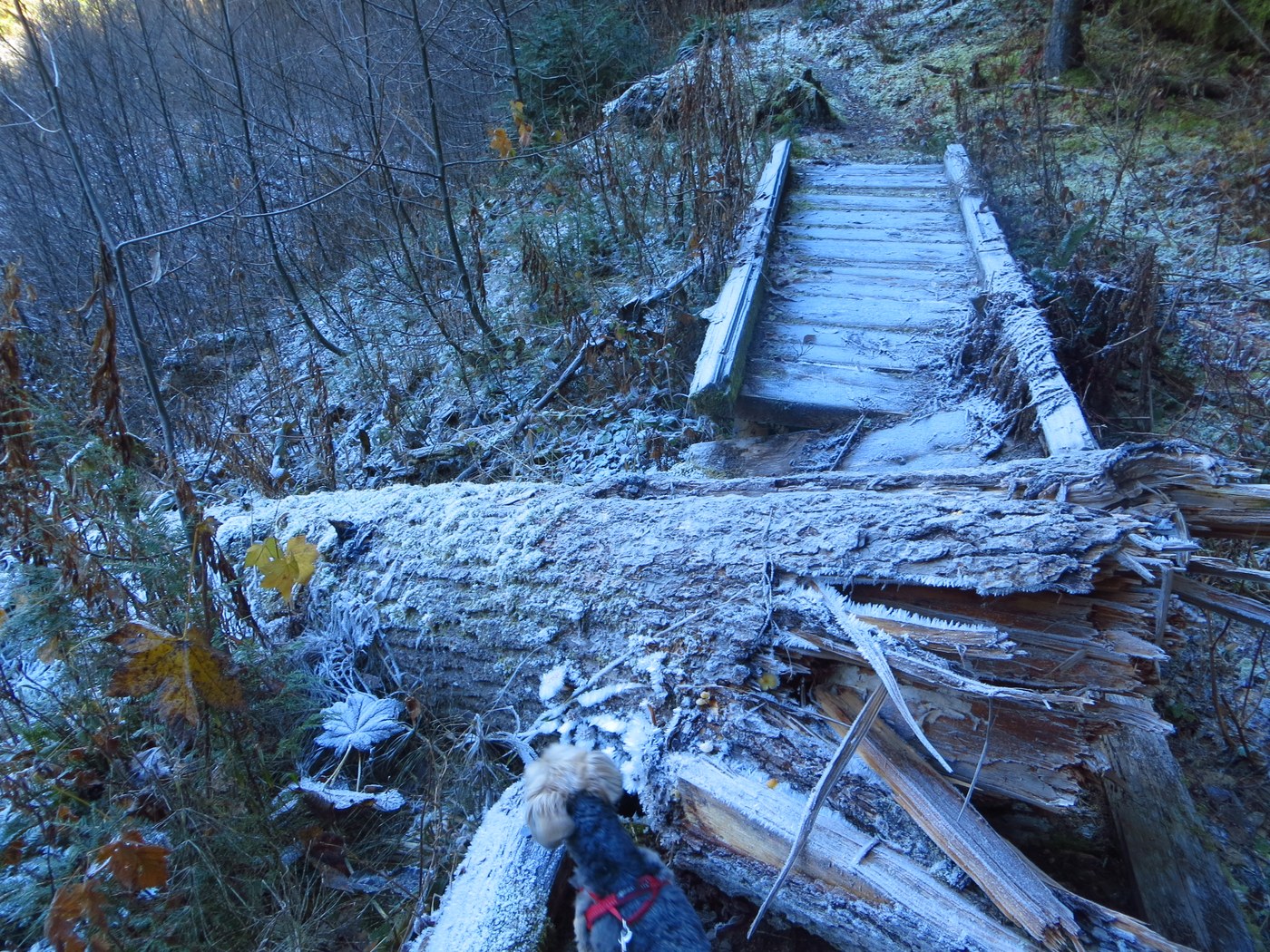 With the nice but cold weather I thought I would explore the Downey Creek Trail. I arrived at 9:15am and found the Downey Creek parking lot closed because of unsafe tree issues, so I parked further down the road directly across from the trail.