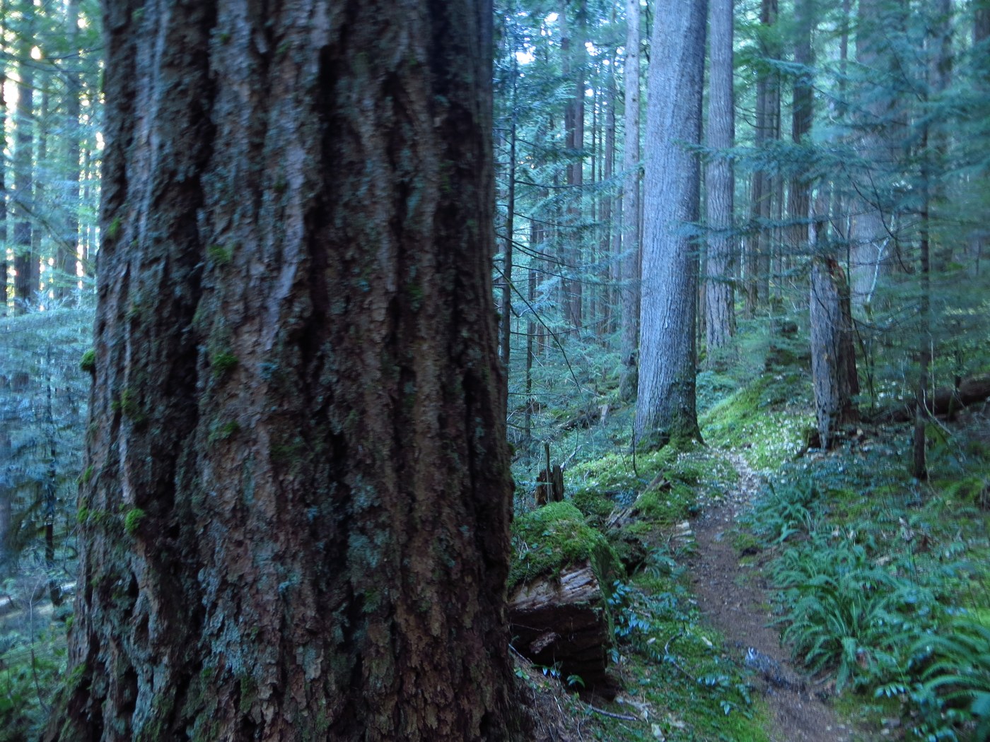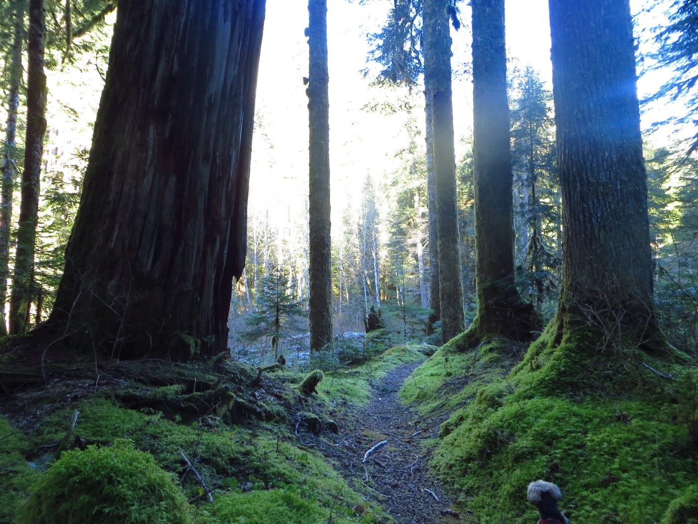 The trail starts out with some easy switchbacks but soon levels out, taking you through old growth forest. Most of the trail was in good shape but there were areas with blowdown problems and some challenging creek crossings because of the ice. According to some other reports these same creek crossings can be tricky during times of high water. Once this trail gets maintenance it should be a good early and late season trail because of the elevation.