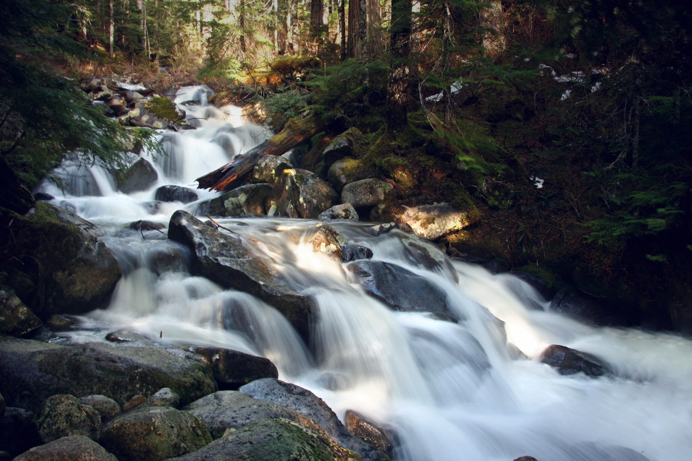 While this FS road is notorious for it's large potholes, it has seen quite a bit of washout since I was last up here. The ruts in the road are quite large and rocky and would really only recommend high clearance vehicles. I was able to carefully make it up the road in my Subaru, and I only saw trucks and other Subarus at the trailhead. Although there are some wide spots in the road before the ruts, I wouldn't guarantee being able to park here and walk up. Absolutely gorgeous day for a hike, felt a lot more like spring than summer and the trail gave evidence of this as well. The trail is quite muddy in it's usual spots (right before reaching Talapus lake and again before the Olallie/Pratt fork). There is also compact snow that is mostly ice stretching from the bridges to Talapus lake and again just before the Olallie/Pratt fork. Despite having my spikes with me I didn't really bother using them and didn't have much trouble with my footing. If you have any interest in staying the night at Ollalie, most of the campsites are quite wet except the very first one where I passed a couple of hikers who had appeared to have camped last night. Also if you are planning to continue on to Pratt lake the creek at the fork is currently quite high and looks as if it would take some very careful footing to cross.