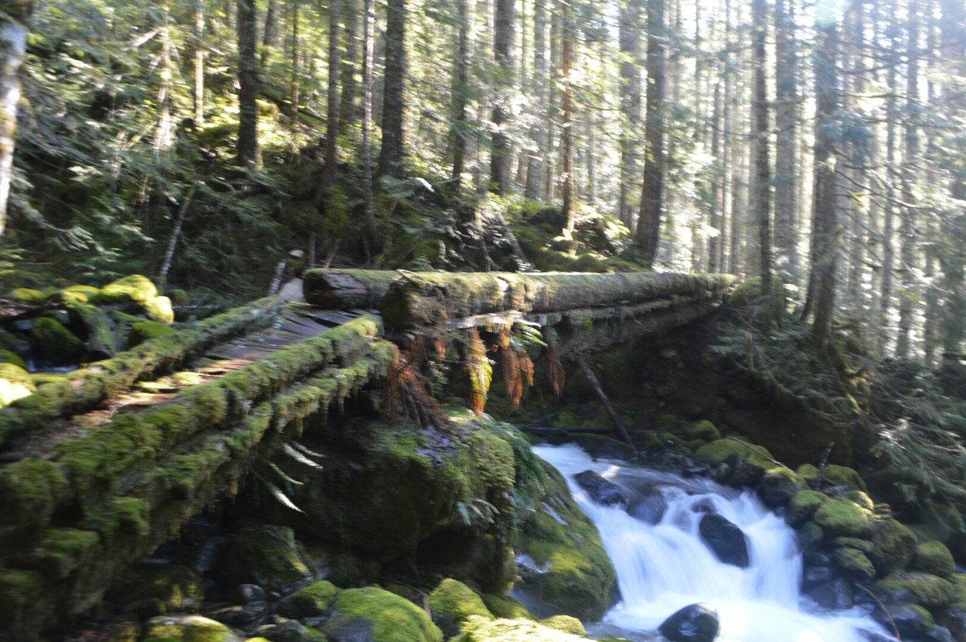 My trip to the East Fork of the Foss River began at Wallace Falls, where I originally ventured with the thought that I'd real off my monthly tromp there. But, on arriving, I found that not only was the parking lot completely full, but the sides of the roads leading up to the state park gorged with cars and a steady stream of people walking to the road. I was a little shocked...there were more people than on a busy summer weekend! Having no desire to join the throng, I decided to go elsewhere. After running through a mental list of possibilities, I selected the East Fork Foss River, where I figured the crowds would be minimized.