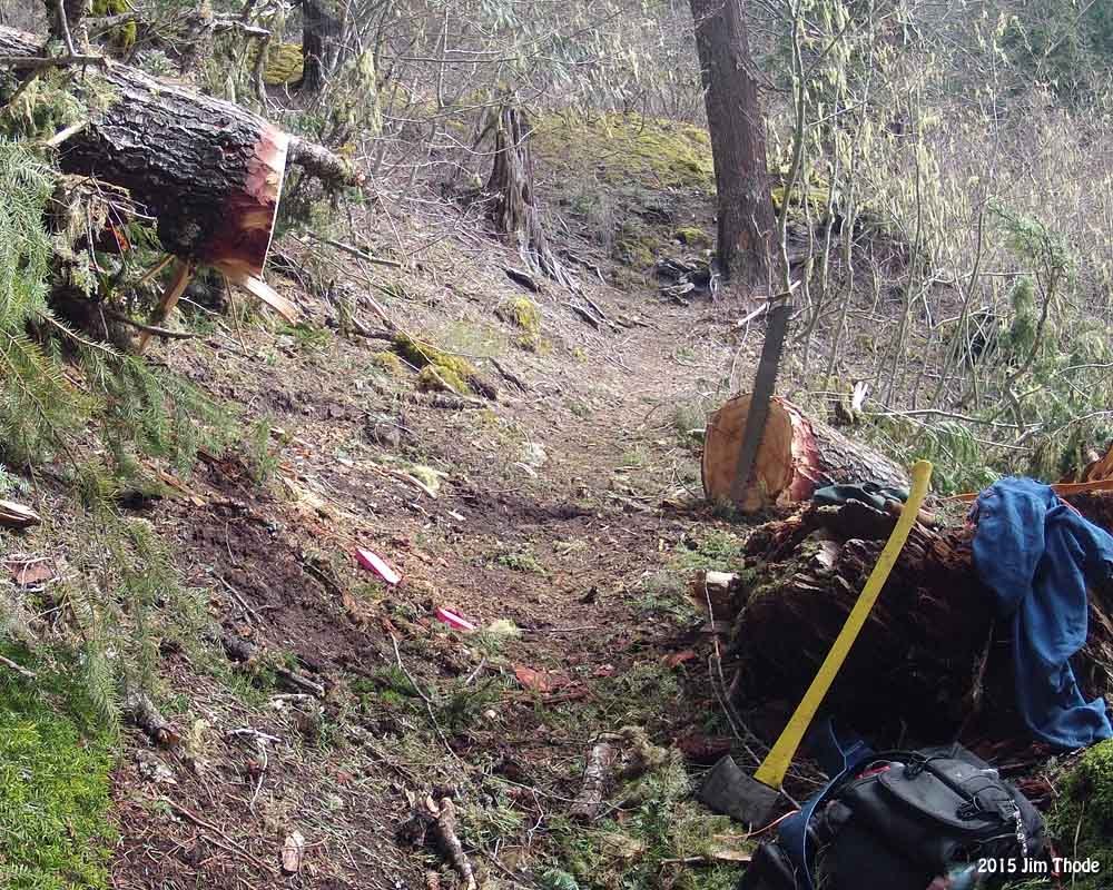 The Packwood Lake trail is cleared to just below Mosquito Lake with a few smaller and one larger (about 3') windfall blocking the trail there. The Upper Lake Creek Trial is cleared along the lake to the SE end of Packwood Lake. Clearing by members of Lewis County Chapter of the Back Country Horsemen of Washington.