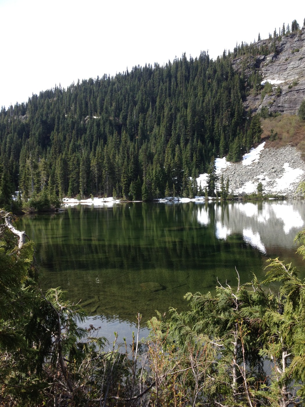 There were patches of snow as we got towards the lake, but much less than I'd read on the last trip report before we went. It's melting quickly, and while we were at camp we could see it recede and puddle.