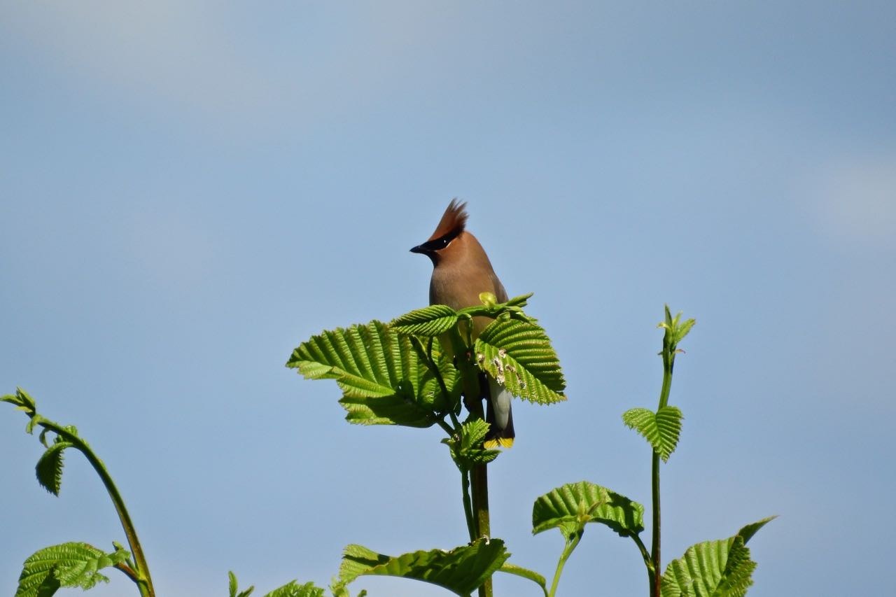 We arrived at 10:45 to an almost full parking lot which included 2 school buses. Our sightings were few, but we did get some exercise on this beautiful day. Two cedar waxwings, an eagle, a female hooded merganser with her grade school age children, a turtle, red-winged blackbirds, robins, and sparrows were the only sightings. There was a -2.4 tide when we were there which probably lessened our sighting even more! We were hoping to see the wood duck family, but they did not make an appearance! (:!