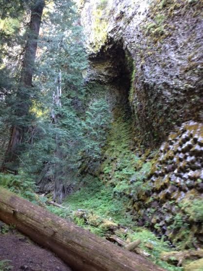 We had the trail to ourselves on this warm Monday. Didn't get too hot, most of the trail stays in the shade. 2.5 steep miles in took about 2 hours with a lot of stops for pictures of the awesome columnar basalt wall. Some amazing volcanic features on this hike. Trail follows a creek most of the way with a lot of little waterfalls to look at. One wet, slippery crossing with a drop off was the only sketchy part of the trail. Blue lake was pretty, water was pretty chilly but on a hot day, a jump in would be great. A couple primitive camp sites right on the lake. An ATV path crosses the hiking trail .25 miles from the lake, so easy access to camping. So LOADS of tadpoles near the shore of the lake. A couple mosquitoes got me right at the lake but the rest of the hike was fine. Signed the registry when we got back to the trailhead. 1.7 mile road to trailhead one lane with a few large ruts. Low clearance vehicles might have a little trouble. Stopped to use the vault toilet at Blue Lake Campground just pass the road to the trailhead. Looked like a nicely maintained area.