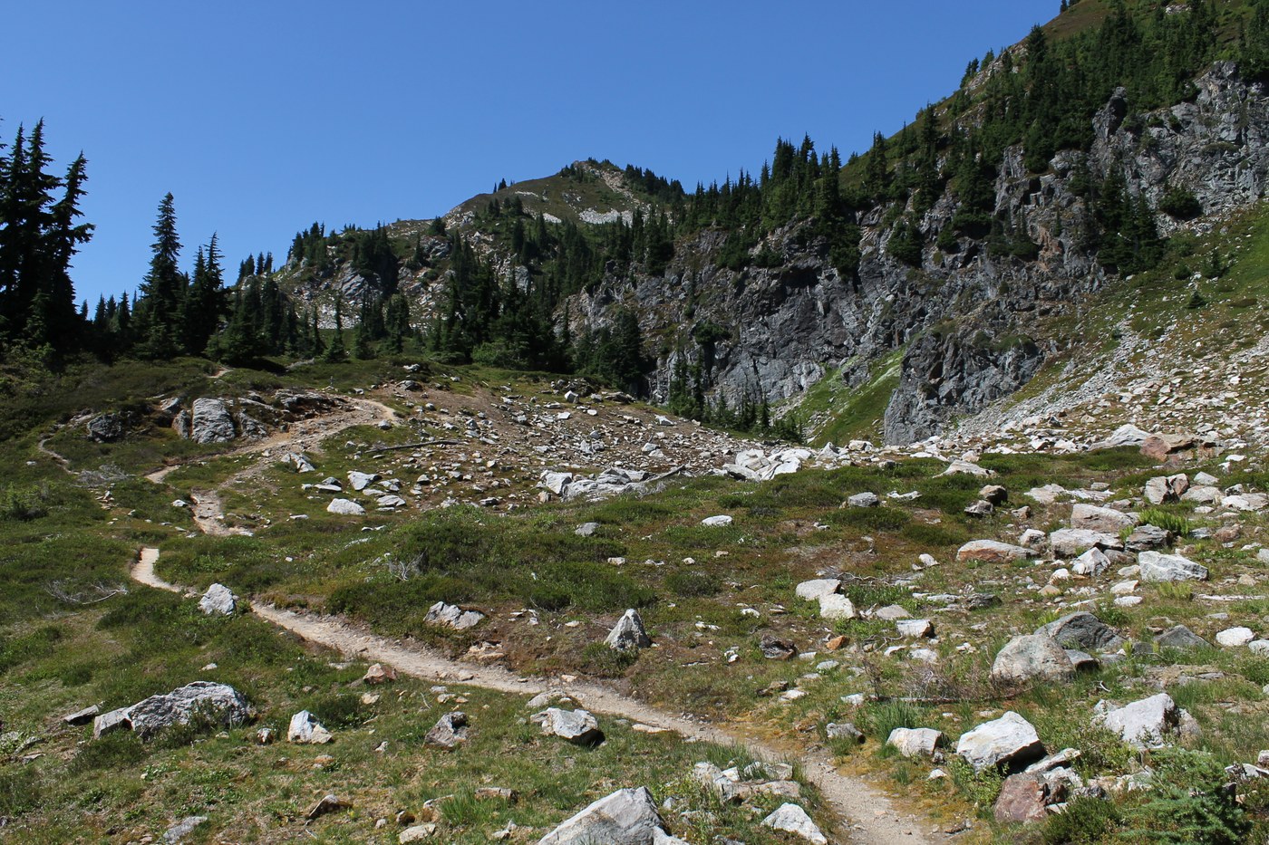 Wildflowers are already done, but berries everywhere! Salmon and thimble berries at lower elevations, then huckleberries, and tons of alpine huckleberry/blueberry species in meander meadows and along the rest of the loop in patches. Best berries were in the meadows though.