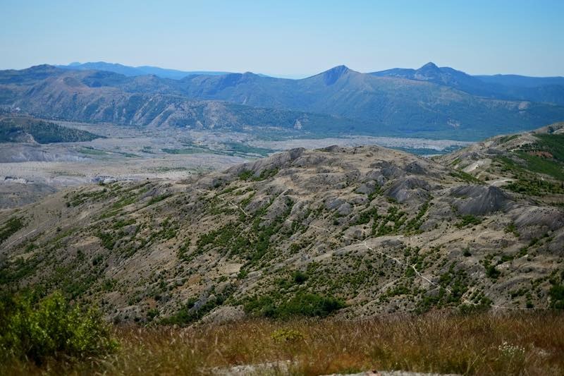 The very last mile up to Harry's Viewpoint is steep, but it is worth it! You don't need trekking poles or anything like that, just a good deal of leg power and determination. At the top, there's some kind of solar panel thing and a concrete slab that's perfect for resting on and taking in all the sights. Spirit Lake is super blue and beautiful, and we saw Mount Adams rising up behind it. Also from this hilltop, you stare right down the throat of Mount St. Helens.