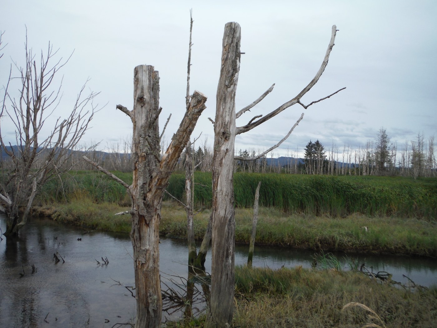 The trailhead is 5 minutes off of I-5. The dike trail is wide, easy to walk on. It narrows toward the tail end, as you reach the Skagit River. Great place to hike, whatever the weather. Yesterday had a nice wind, with rain to come in the air.