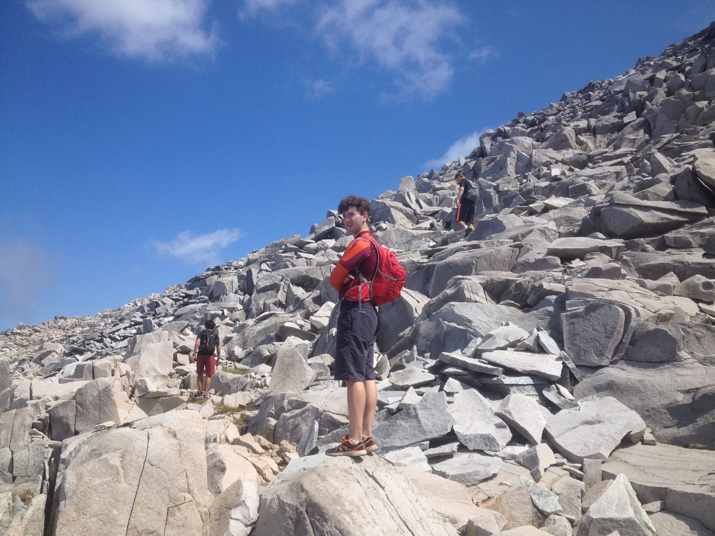 La Bohn lakes are beautiful, no snow around. From there we ascended the shoulder of Hinman and stayed on the North side of the ridge. A few snow/glacier crossings high on the ridge around 7000 ft, but we were fine in just running shoes. Most of the ridge is just class 2 with a sprinkling of class 3, but the biggest annoyance is by far the lose rocks. During the last 20 minutes, just about every boulder we stepped on slid or rocked. We stopped at the ridge around 7450 ft, so technically were 40 ft short of the true summit, but that involved a more serious glacier crossing and we didn't have the time or gear for that, so started back.