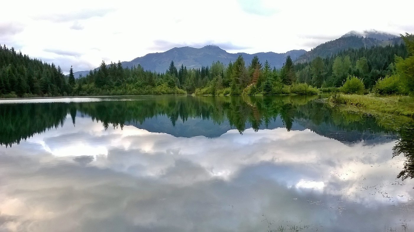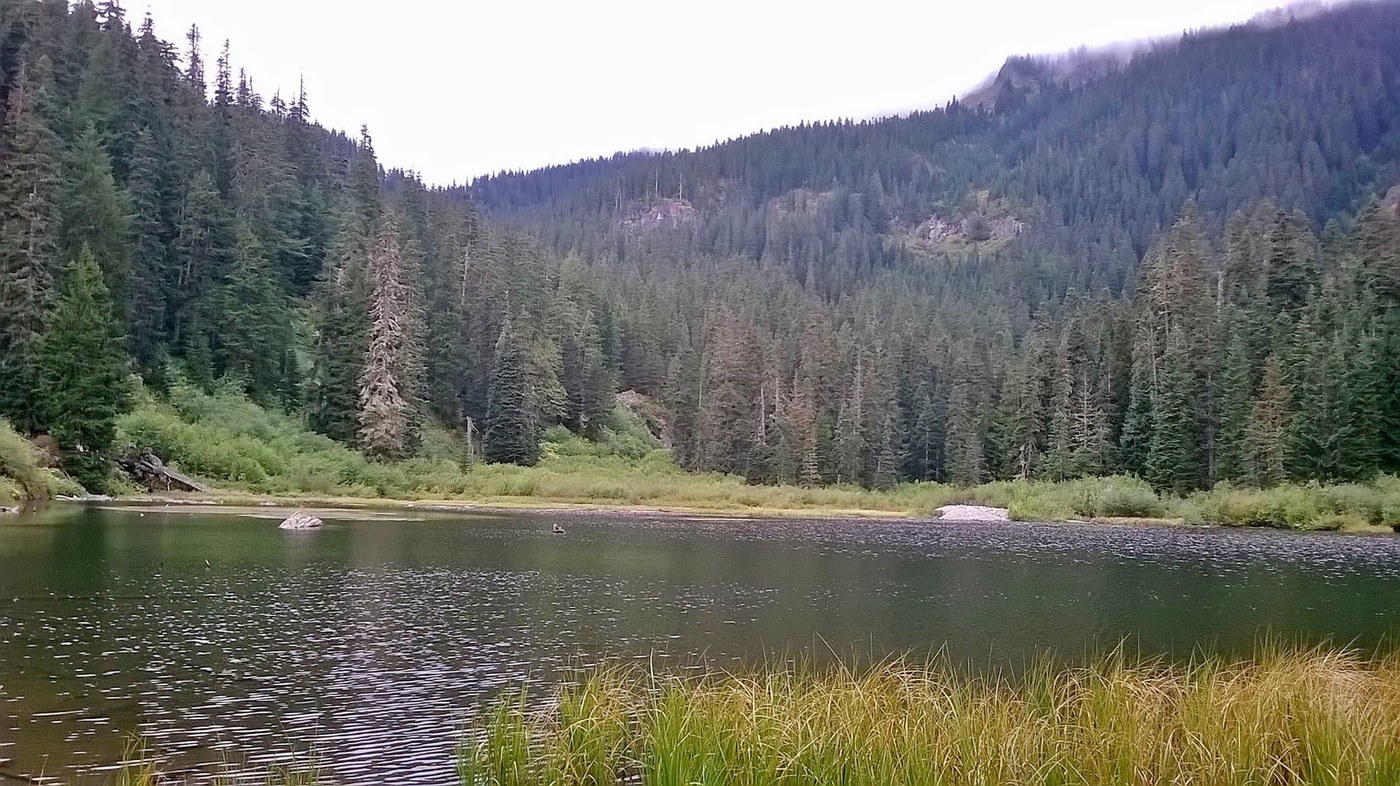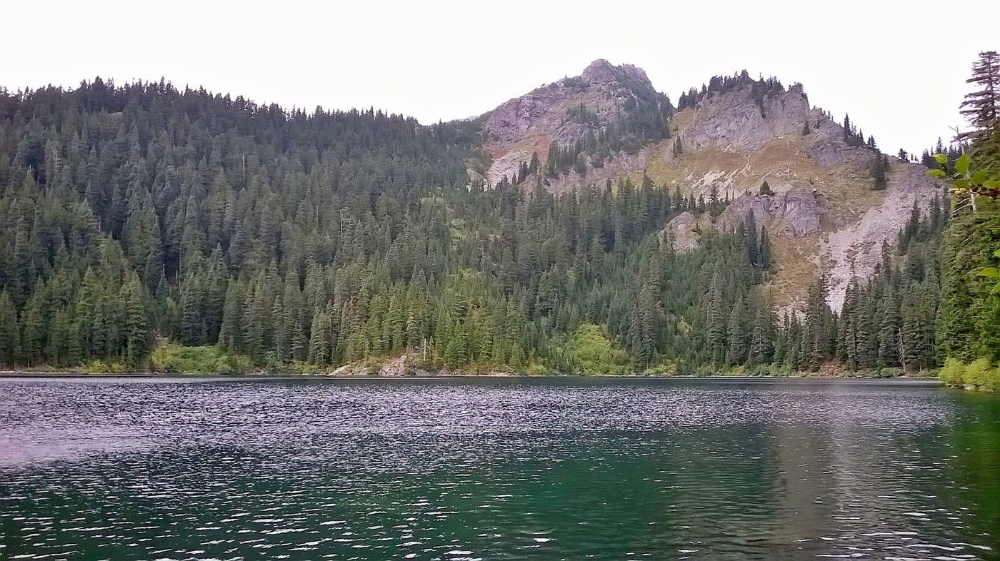 I was all over the place Saturday. I made a stop at Gold Creek Pond and walked the paved trail around the pond before heading up FS road 9070. I intended to hike Silver Peak starting from the Pacific Crest Trail (PCT) on FS Road 9070 but the road turned too rough for my new car. I returned down the road and parked across from the Cold Creek Trail and started up the trail to one of the Twin Lakes; I only saw one. It is an easy one mile to the lake. The trail past the lake headed up to the Pacific Crest Trail is rough to say the least. The trail is brushy and eroded. There are downed trees that need to be climbed over and under. From Twin Lakes it is one long mile to the PCT; however, the trail runner headed up had no problems leaping over the obstacles. He was the only person I encountered on the Cold Creek Trail. Once at the PCT, instead of heading North to the Silver Peak trail, I decided to explore South. I followed very nice trail to a junction where the trail straight ahead led to big beautiful Mirror Lake. After enjoying the lake, I returned to the junction and made a quick trip (half mile) to Cottonwood Lake. I returned to the junction and turned back on the PCT heading North. Instead of returning to my car via Cold Creek (I dreaded going back down that trail), I continued to follow the PCT North back to road 9070. I walked the road a few yards until I came upon the Mt. Catherine trail. I followed this trail in the opposite direction of Mt. Catherine (opposite side of the road as the trail marker) back to Twin Lake and back to my car.