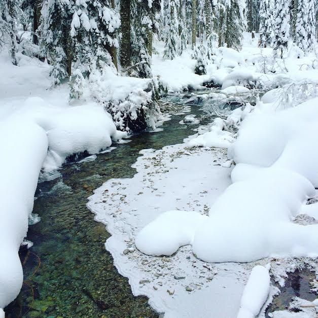 This was a great workout through a winter wonderful with views of the icy and beautiful Surprise Creek and some occasional glimpses of the surrounding peaks.