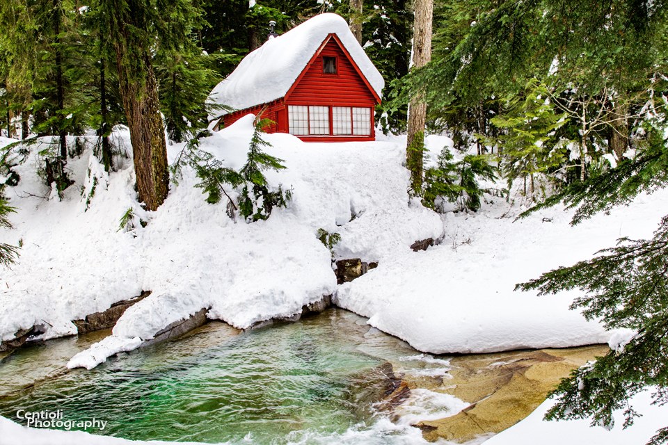 Forest Road 58 is in good condition, but you'll have to park about 1/2 mile from the trailhead. The trail was compact snow and easy to follow with a few trees you can go around or over. If you get off the trail, the snow is deep. The last section of the trail to the falls is slippery, otherwise it was an easy hike. I wore traction cleats and didn't have any problems.