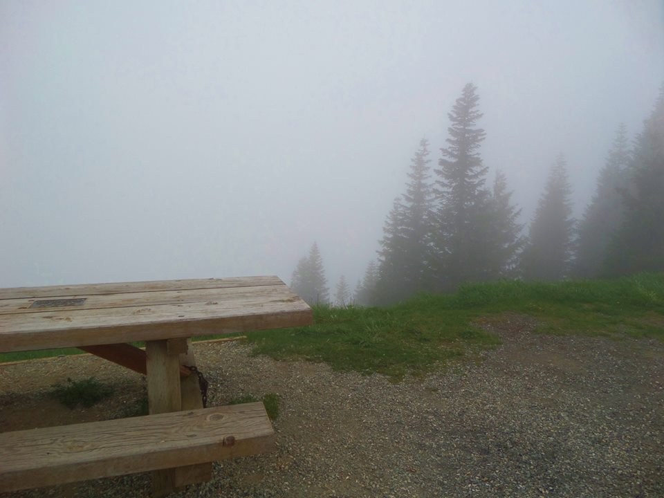 It was a very foggy day up there, but we decided to go for it! This was our first time hiking this trail, and we loved how there were wildflowers blooming everywhere. The flowers were our only view though, as we could not see anything else through the thick fog. My husband and I found the trail to be a bit dangerous too. We were hiking with our kids, and saw they were slipping and tripping on many loose rocks on the trail. Since it's also a trail with a steep drop-off to one side (the entire way), we were very concerned with all of the tripping everyone was doing. Rocks would also fall off the trail, roll and accelerate downhill, which we found very worrisome for any hikers below.