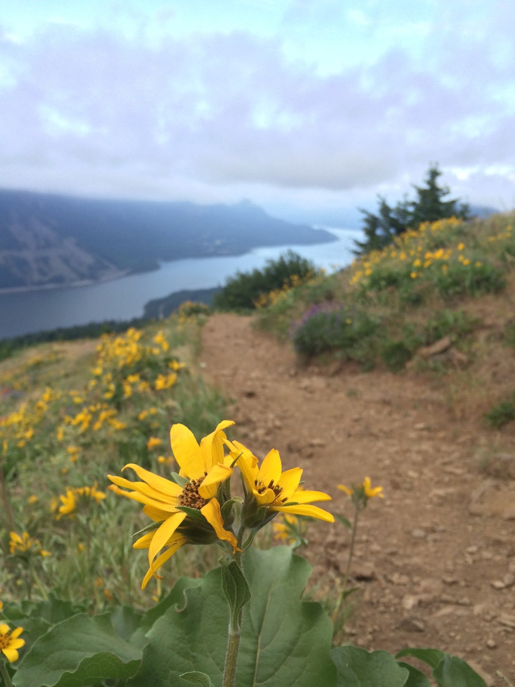 The climb is steep and the hike is tough. You're grateful for the shorter length half way up. That being said, I gave myself 7 hours to do this hike (including driving and lingering time) and I was back at the car in 3 hours and back in Portland in four. (It was a foggy day, which meant I didn't linger at the top.) The wild flowers are lovely right now but I can tell I missed their prime. I doubt they'll last much longer than a few weeks-- and they'll only look more chewed up.