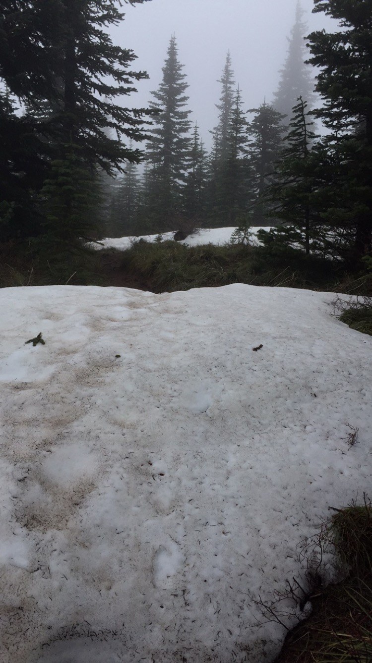 I have been wanting to do this hike for a long time now and I couldn't wait any longer. I have been keeping an eye on the trip reports and it has been awhile since the last one so here it is: Even though I knew it would be mostly cloudy with little chance of seeing the mountain a friend and I headed to the top. We were the only ones on the trail the whole time. A couple of snow patches that were easy to cross, just sunk a little a few times. It was very cold and windy at the top, quite a big difference from the temperature we experienced from the rest of the hike which was warmer. The lookout was awesome and I would love to come back on a nice summer day/night and stay...so I will be back!