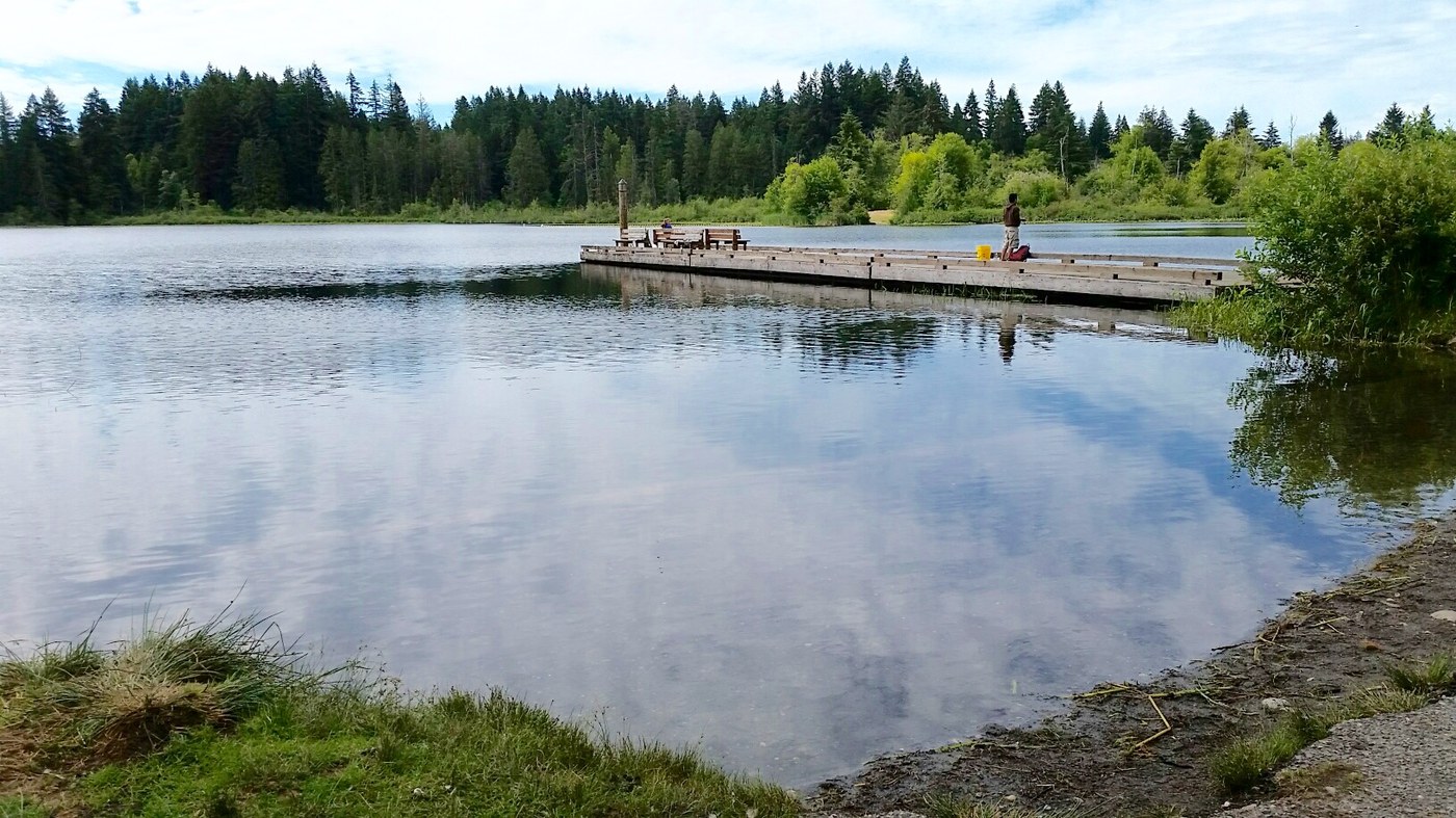 Arrived late morning. Very few other people. Parked with Discovery Pass and took trail immediately at entrance to the park. Stayed to the right to do the large perimeter loop, ended up doing 4.45 miles. Some areas overgrown but not a deterrent. Grill and kayak/paddle board rentals open at lake front. People fishing. Restrooms open.