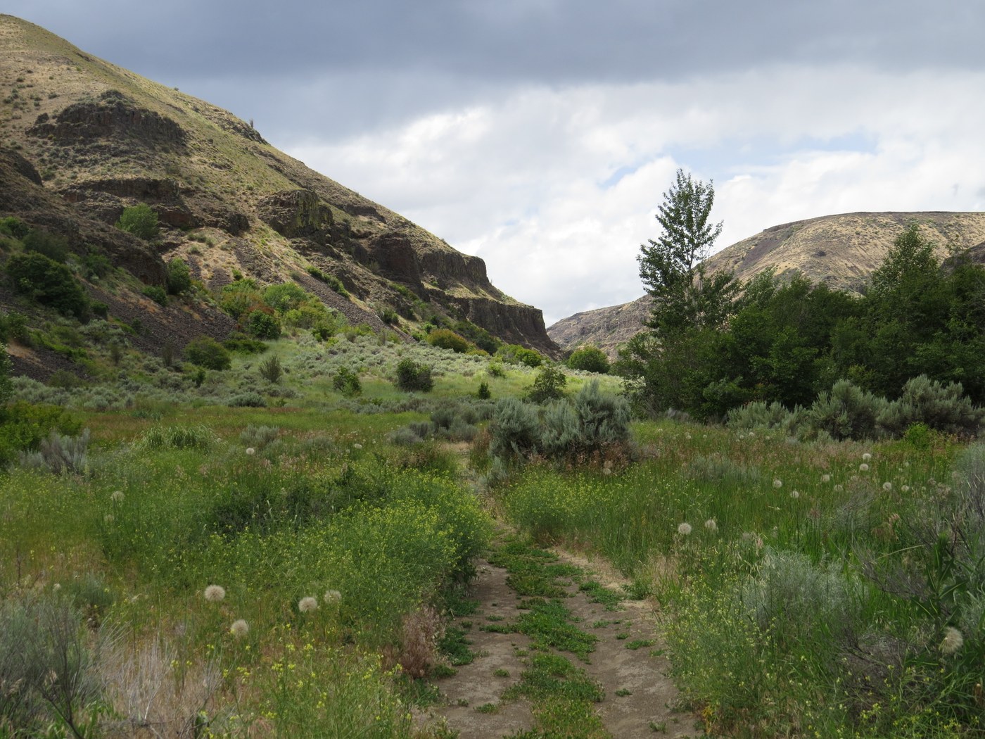 Hiked in about 3 miles, found a nice site near the creek. Beautiful canyon with lovely groves of trees and areas of tall grass. Heard rattlers and saw other types of snakes. Look for beaver dams. Variety of raptors overhead. Heard some persistent cat-like sounds at dawn. Beautiful easy hike/backpack. Low traffic mid-week. Nice area for photographers. No ticks!