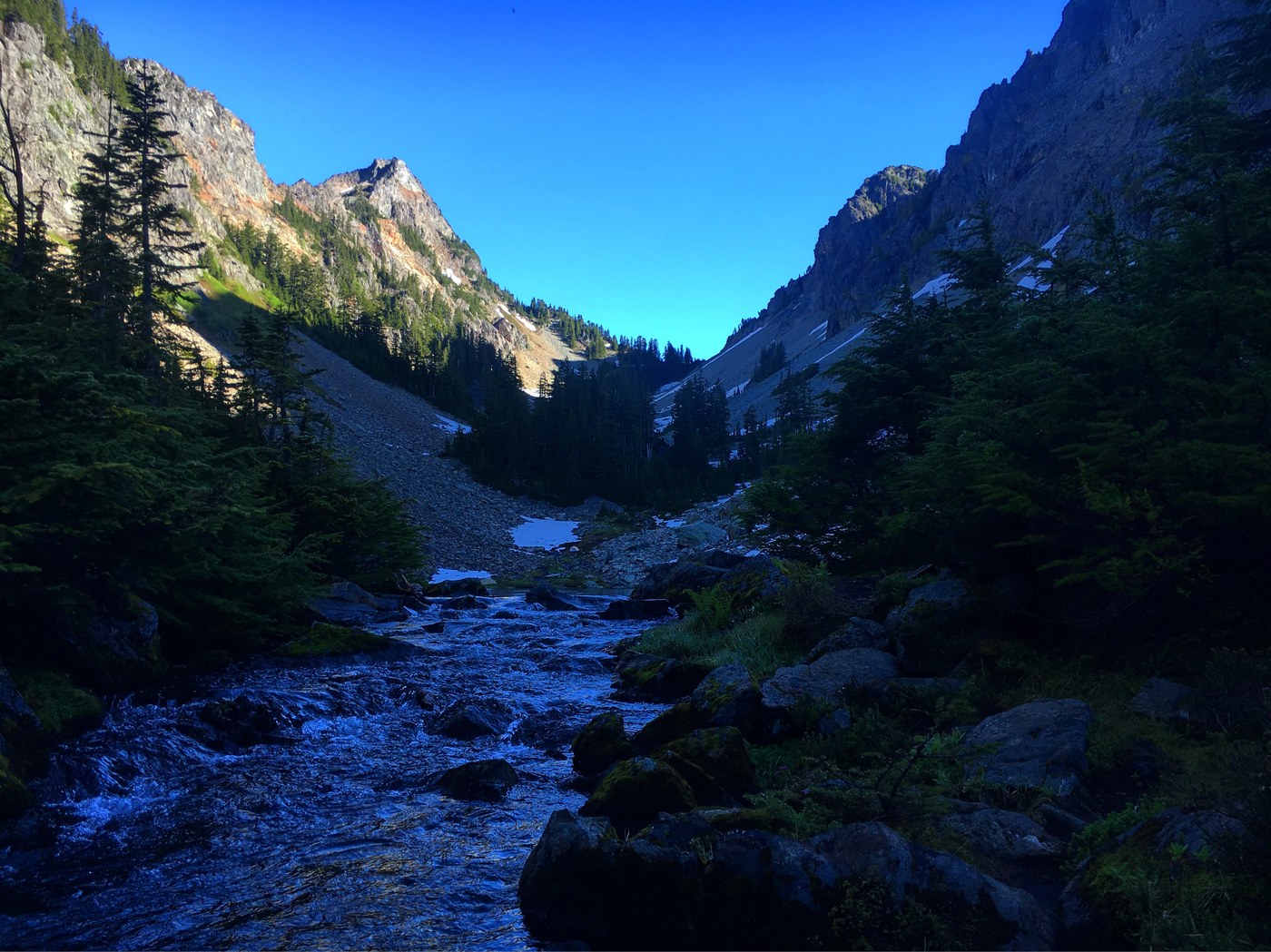 This ford is maybe a bit trickier than the first because I think more people stop (read: use) at the first one as a recreation site to play in the water. After this ford, there is a gentle grade that starts climbing more quickly once you hit the switchbacks. The trail winds through more talus fields and then back into old growth forests. There are one or two significant blowdowns along this part but nothing that is too difficult to cross. Once we reached Hemlock Pass at 3.7 miles we encountered a forest ranger who was doing some trail maintenance and clearing some blowdowns off the trail.