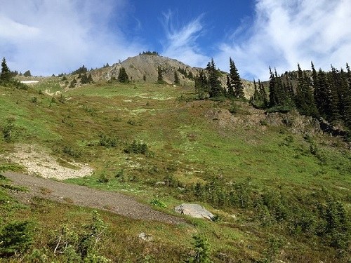 Started our trek to Home Lake via the Upper Dungeness trail. Made good time to Camp Handy. After Camp Handy trail climbs steadily to Boulder Shelter with intermittent flat areas, especially as you get closer to Boulder Shelter. Trail between Boulder Shelter and Home Lake becomes more primitive. Lots of brush, several trees blocking the trail, one waterfall that will get you damp/wet due to narrow footing, and one small area of snow to cross. Despite these "obstacles" nothing was too difficult to maneuver around. Another steady climb at the very end of the trail to Home Lake (maybe a mile or so). It did rain for about 1.5 hours just before we reached the lake. Limited camp sites at the lake and the rain flooded a couple of sites that were under the trees leaving even less availability. Very quiet and peaceful at the lake. Woke up the next morning and hiked up to see the beautiful views from Constance Pass - a short but steady climb. Overall a great hike and plenty of water sources available along the trail.