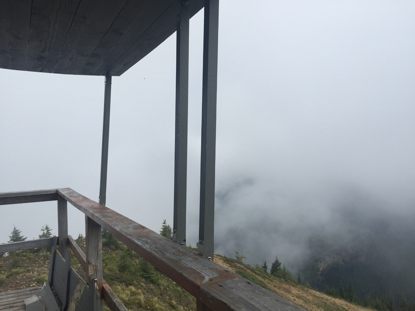 We ate lunch up there and hoped the sky would clear. It cleared a little for about a minute! It was still a fun day with my sister! I can only imagine the views up there.