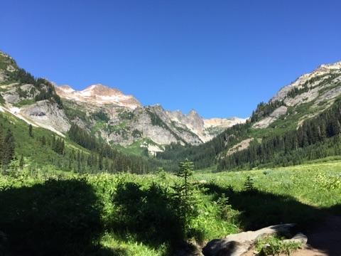 We decided to get up early the next morning to head up to Spider Meadows in hopes that we get up before the bugs. We headed out of camp about 6:30. We hit the meadows about 2 miles in and hiked past the meadows to try and cross Spider Gap to look over to the other side. about 3.5 miles in and 1200 vertical we hit the trailhead to Spider Gap. The trail became rocky and steep with some good cliffs. Actually didn't think it was to bad but my wife started panicking so we took a couple photos and turned around. At the trailhead to Spider Gap there was another trail that went into Phelps Basin. Was glad we decided to take that trail in to the Basin. Was absolutely beautiful. We saw one group of 3 camped there. What a great camp spot, we will make sure we camp there on our next trip in. We sat there ate a little and headed back down to our camp spot. The bugs weren't bad at all that day due to a nice breeze. Once back at camp sat at Leroy to let our feet soak in the water, had a couple adult beverages than broke up camp and headed