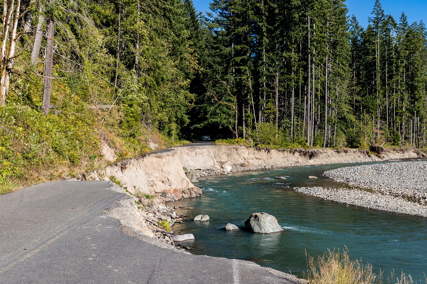 I didn't check the trip reports before heading up. As you can see in the photo, coming in from Randle on FR23, about 12 miles up, the road has been washed out.
