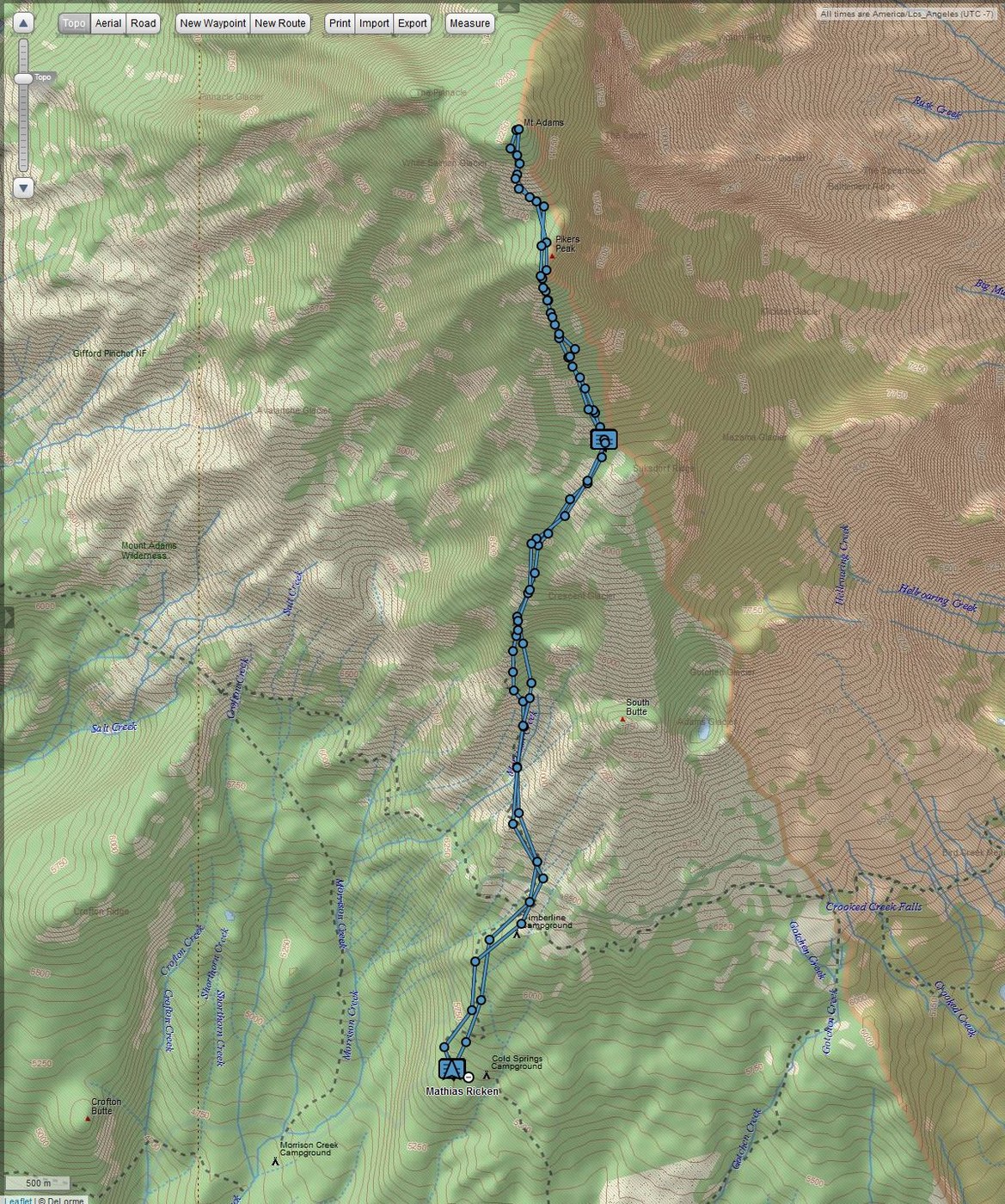 Friday evening we drove out to Hood River, OR, where we stayed at a hotel for a last night in a bed and a gear check. Saturday morning, we ate warm breakfast, drove to the Ranger Station in Trout Lake and self-issued climbing permits. By 8:30, we were at the trailhead, which was quite packed with cars. The last mile of the road was quite rough for my Toyota Camry.