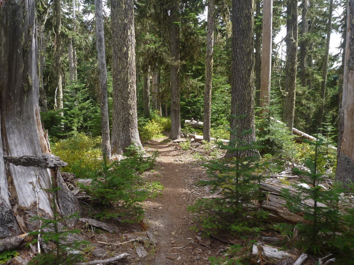Reached the trailhead around noon. FR-48 was dusty, but in good condition. Looked like there would be active logging during the week. The hiker trailhead had a proper sign with a trail register etc, but would have been easy to miss if we hadn't know the exact location, and seen a couple of cars parked along the road.
