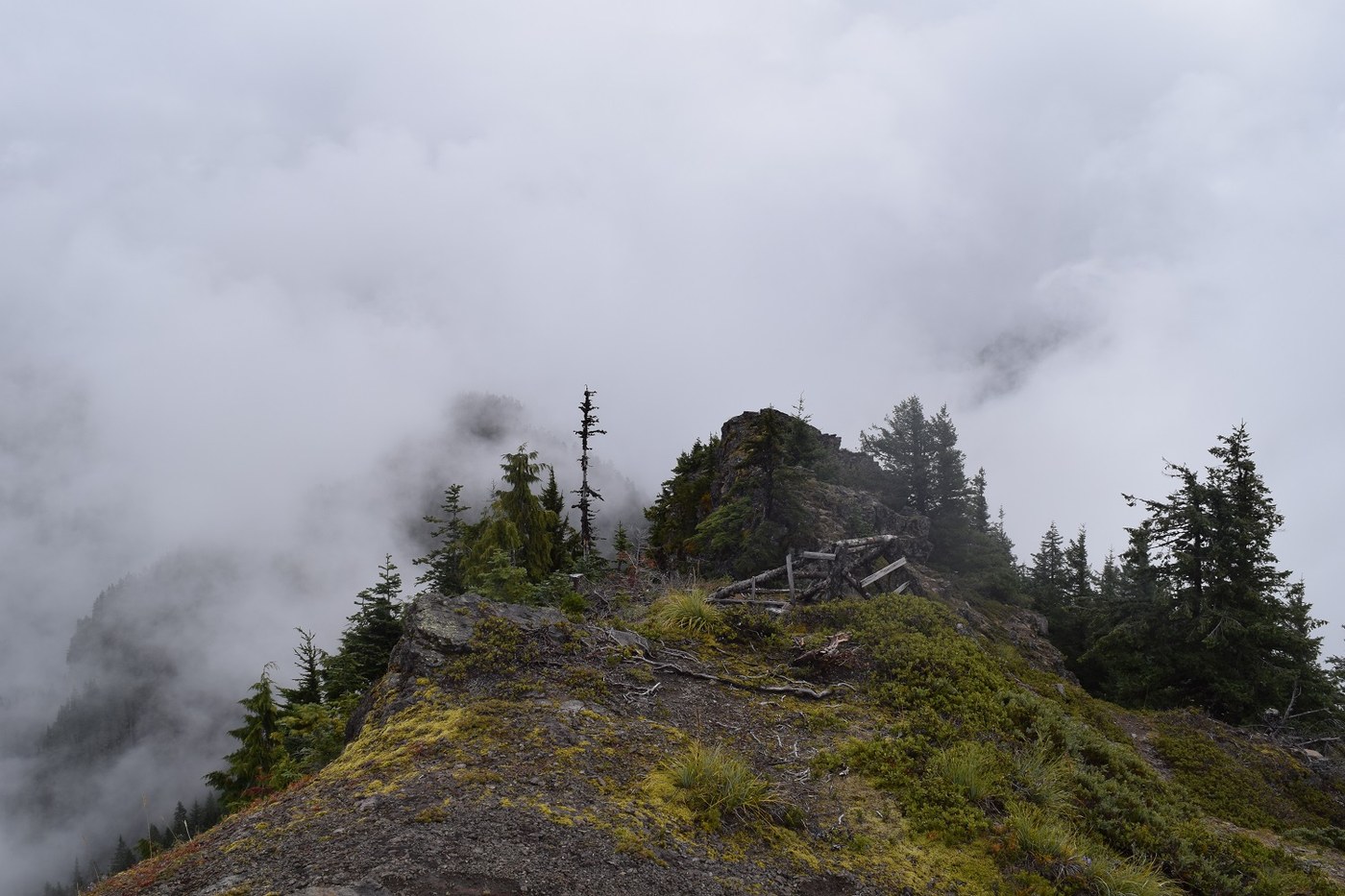 This trail was used for a recent run through the forest. I had heard it was cleaned out so I went there to see if it was any better than the last time. Some logs had been cut off of the trail but it is still pretty overgrown. Forest Road 20 is in bad shape a few miles before the trailhead. I got to it from Jackpot Lake. If the forest service doesn't fix it some of the road is going to slide. I got to the peak just as the clouds rolled in.