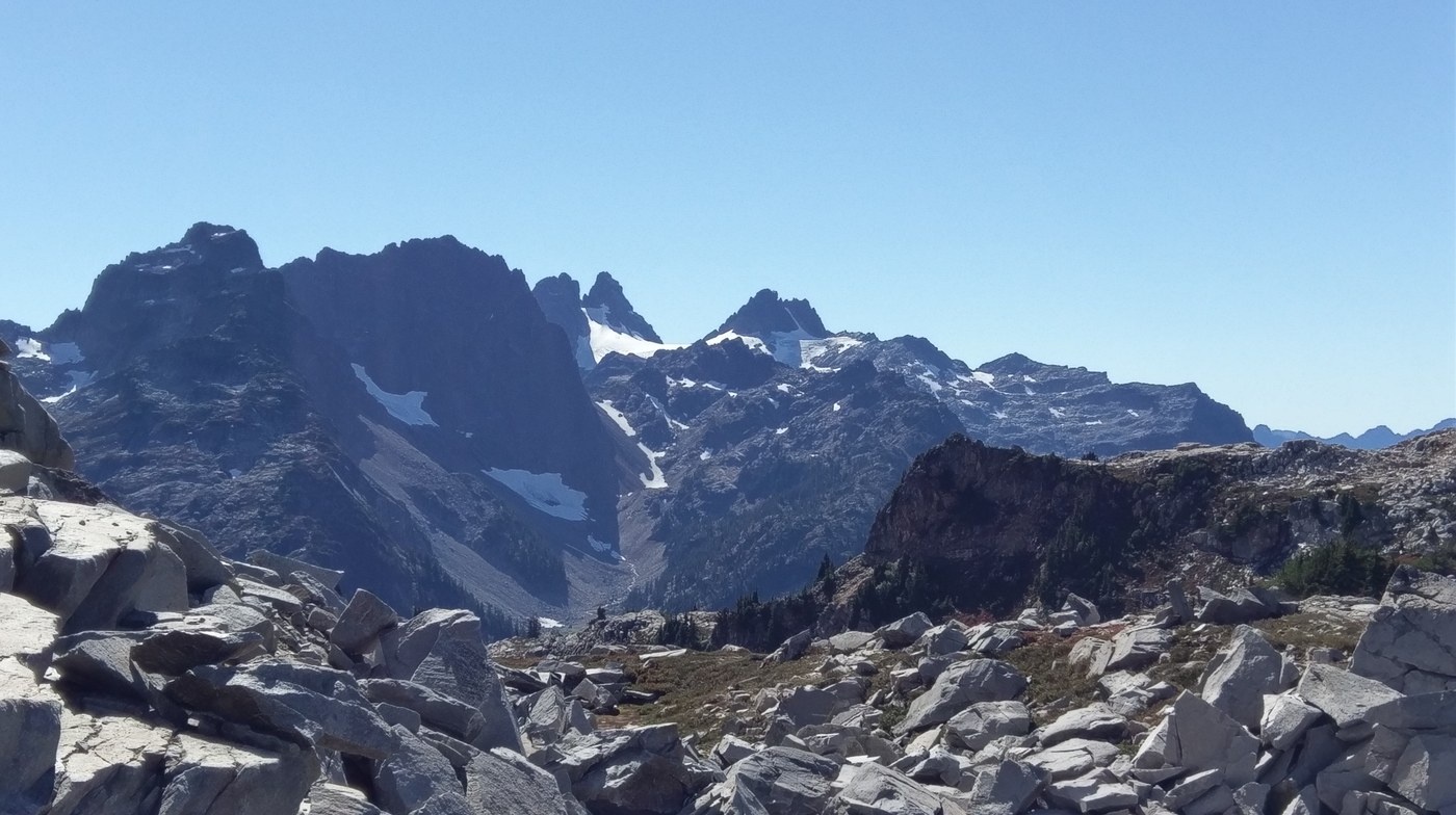 We crossed the river and headed up the steep stuff. We met lots of people leaving the valley. Got to Jade, traveled along the shore, and crossed over the inlet. We explored the the north end of Emerald and took a peek down at Ilswoot where I've camped before. Came back up decided to stay at an obvious site at Emerald. Not a soul around. Well, not until 6pm when we saw the only hiker in the valley that day. An older gentleman came by our spot and asked if he was on the main trail out. Turns out he came from I-90 up to Chain Lakes and was planning on hiking out to the Foss River RD and hitching a ride out. At the hour of his exit, I'm guessing he didn't find any rides, as it would be really late and dark. At this point I couldn't find my food. I had trail mix and jerky. But we realized that when my friend came to get me in the morning, we decided we didn't need 2 stoves and i took mine out. Apparently, my food bag never made it back in. We took stock of his food, and realized we had plenty to continue on. I didn't even finish my trail mix by the end of the journey... :)