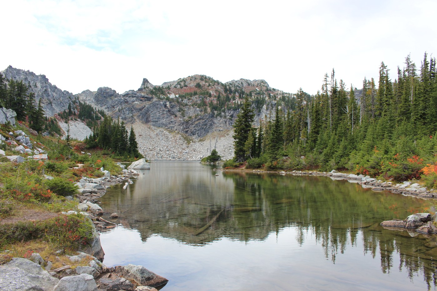 The trip down was certainly faster, but no less difficult, as cloud cover and sprinkles made the rocks and roots slippery. When we heard the sound of the creek we knew we were almost done.