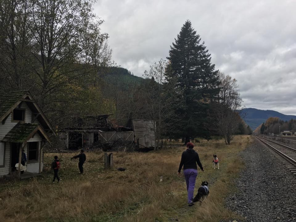 Nice, easy hike. Park at the gate, walk across the tracks, then straight down to the town. No real elevation gain at all.