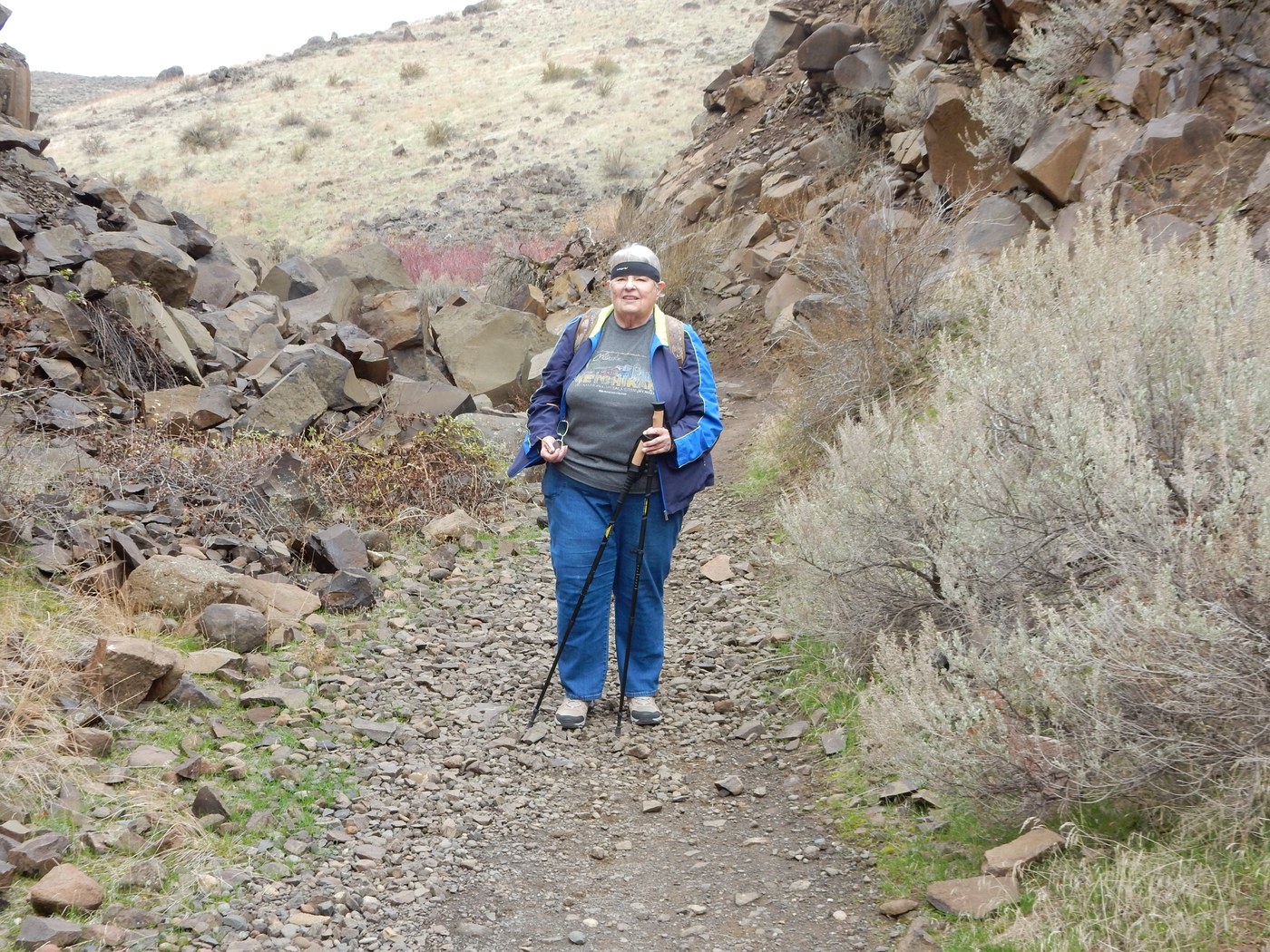 After dropping the dogs for a haircut we went on the East side of Cowiche Canyon and hike to the rock slide. Trail was great and even though we have had a lot of rain there was no problem. For me it was harder coming in on this side because of the path was a little more up and down (not bad) but I have a very bad knee. It took us over 2 hours. We saw only one other person hiking today. Now to rest my knee....