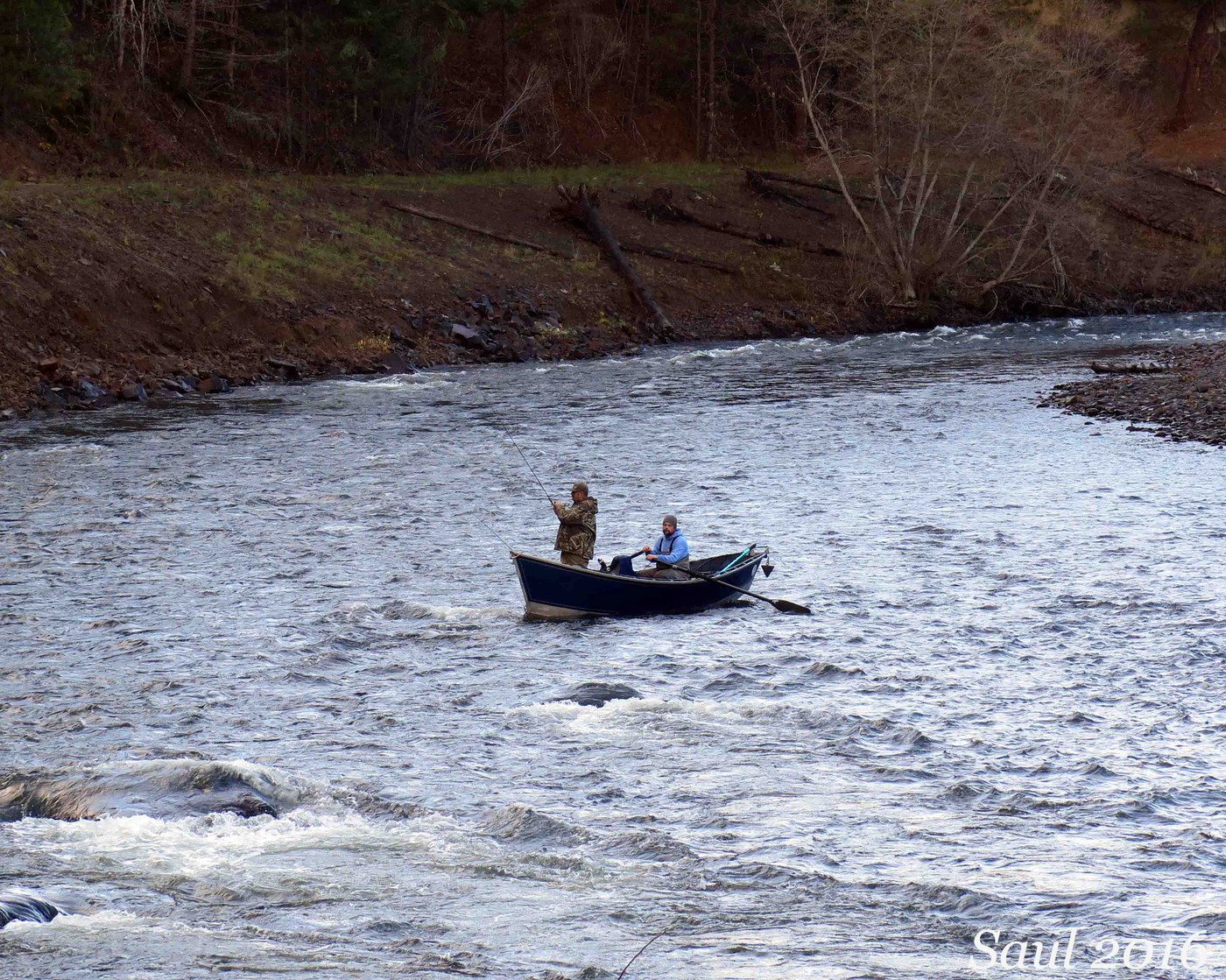 We chose this hike in search of a somewhat dry place to hike on a showery day. The weather alternated among showers, clouds and sun breaks. We had the trail to ourselves although there were lots of steelheaders on the river in drift boats or standing in the water to fish. We did talk to one angler who had caught an 8 lb steelhead.