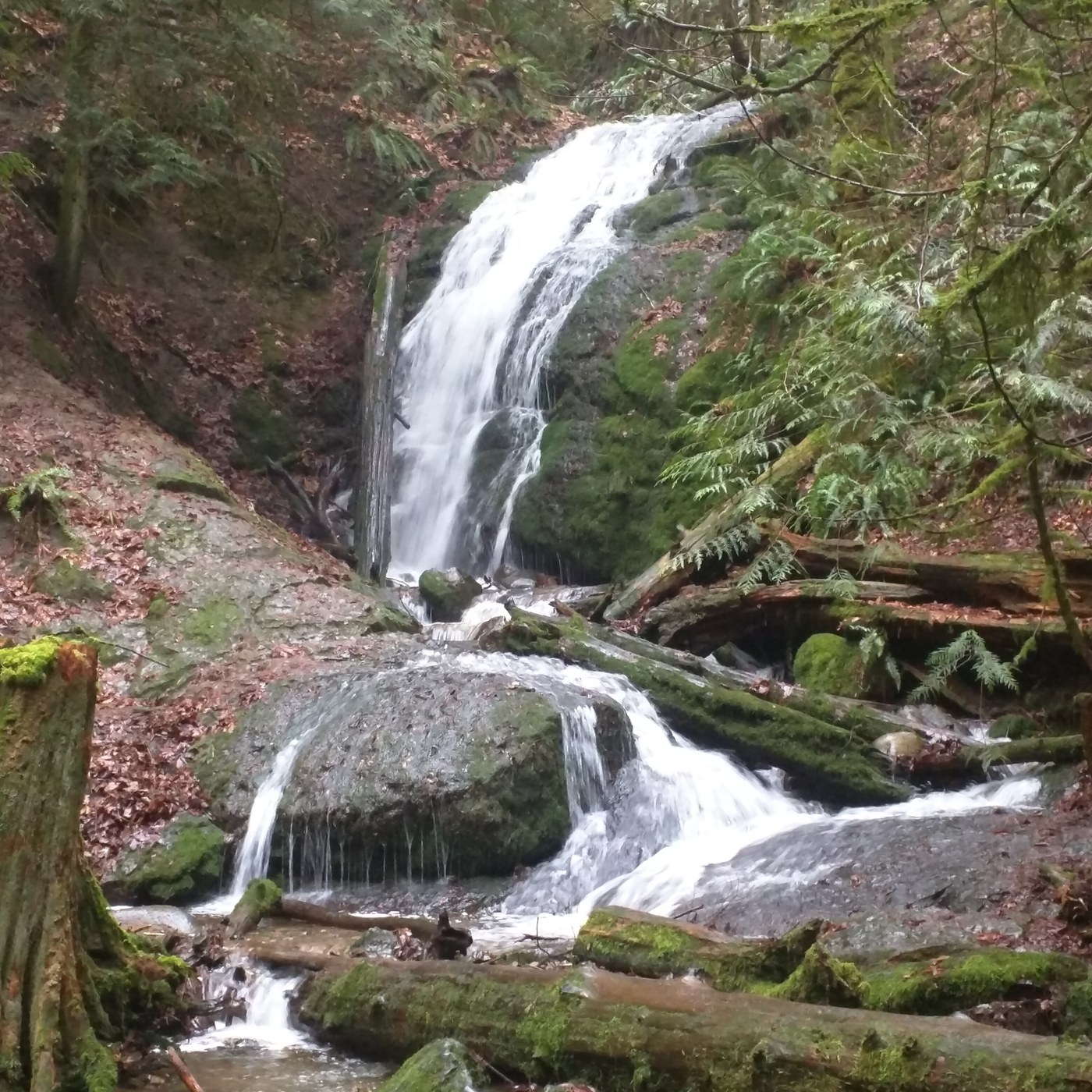 I'm new to hiking so I am starting with short, fairly easy hikes. This definitely falls into that category. First 3/4 of a mile you will have a consistent, moderate grade incline. If you are just starting to get into shape (like me:) you might be a tad winded, however, it doesn't last for long before the trail levels out and then starts to descend towards the falls. As for the trail, it was great. Very well maintained and even though it had been raining most of the day, the trail drained well and I only encountered a couple of muddy spots that I was able to walk around. On my way up, I passed about three groups of people coming down (I started my hike around 1:30pm). On my way down, passed two sets of couples. Overall, a nice way to spend 1 - 1 1/2 hours.