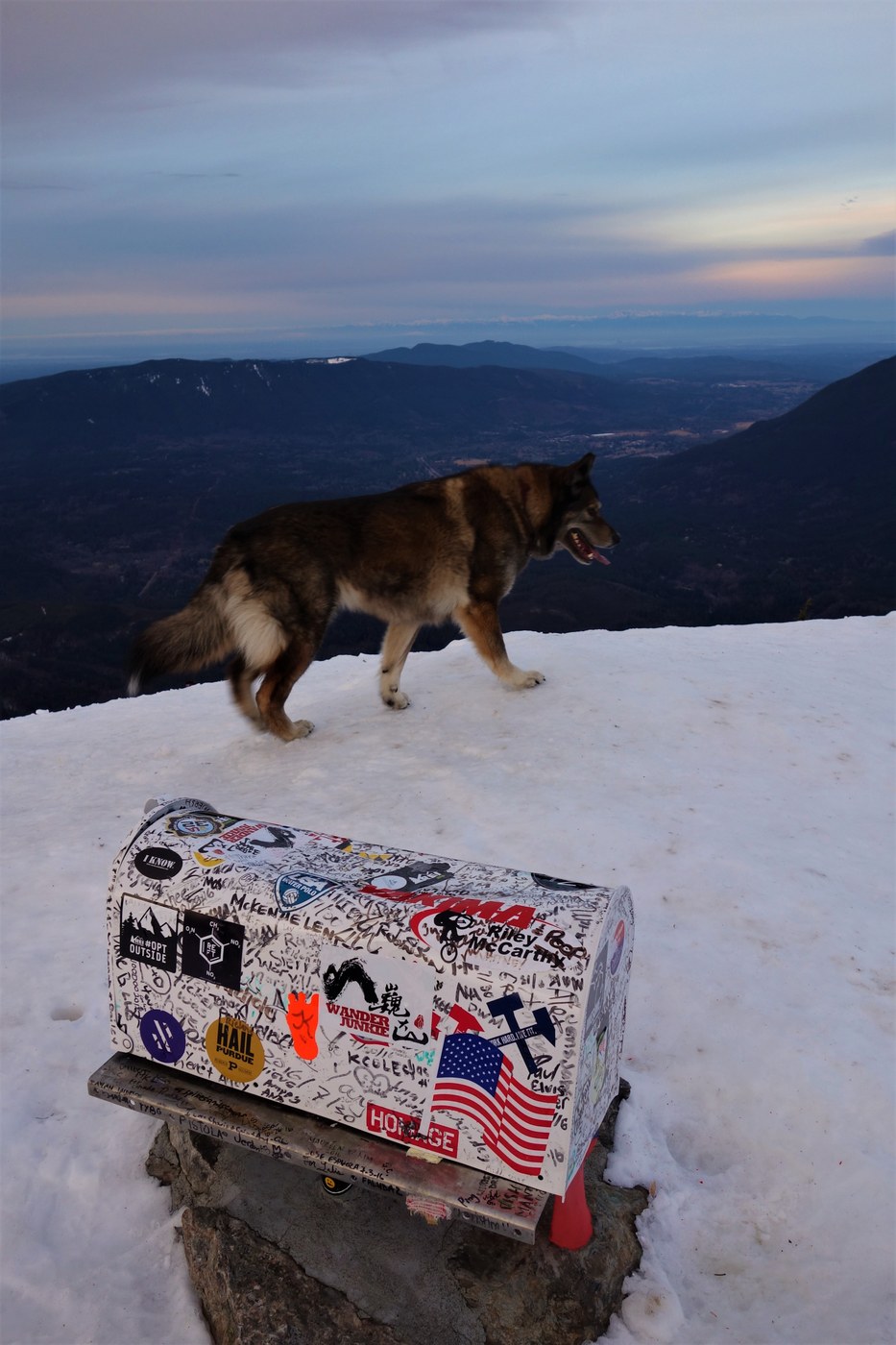 The contents of the mailbox were pretty slim--whoever decided hot dogs were a great thing to carry to the top, well...they'll probably spoil up there. There was a Rainier beer left, too.