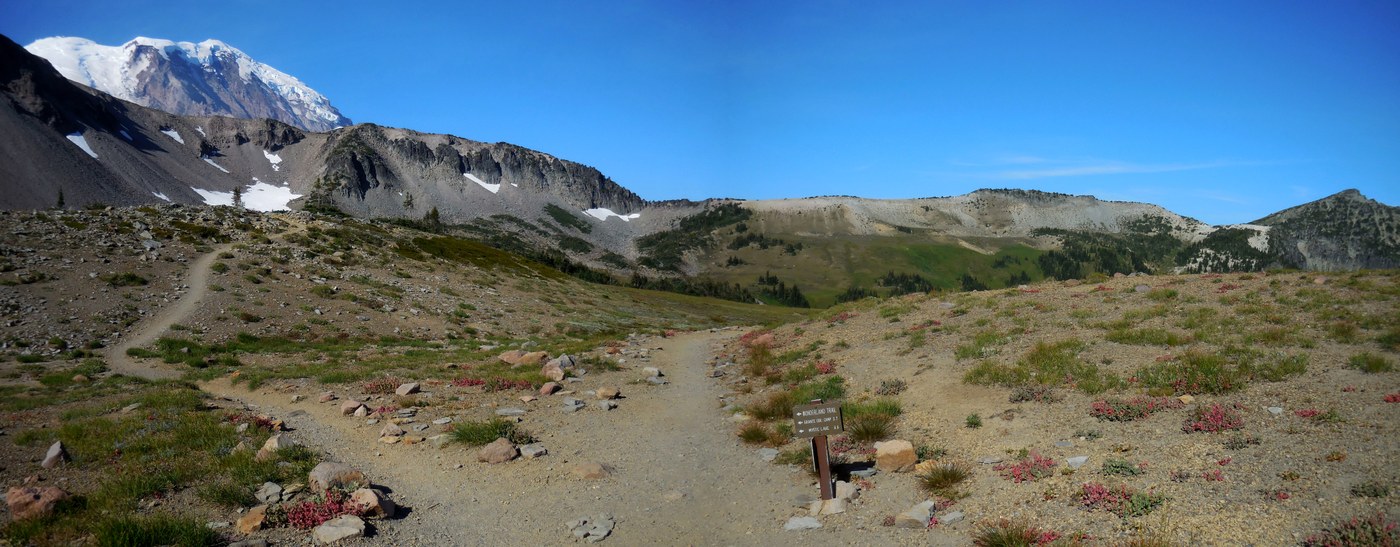 Day 4 Back to Sunrise via Grand Park. What a place. The view of Rainier from Grand Park was one I was hoping to see for the whole trip, and I wasn't disappointed. It is really one of the best views in Washington (and Rainier isn't even my favorite mountain). Coming out of Grand Park, I was really ready for an all-downhill hike out, but of course that wasn't to be. Luckily, Berkeley Park was beautiful, and I made it there early enough that much of my hike out was still in shade. Once I hit the saddle with the Wonderland Trail, I knew I was basically done. I slowed down a bit, and stopped to chat with three guys heading out on a Wonderland trip. They impressed I'd done the loop solo, and said they didn't know many women who would hike alone, so I named a few guidebook authors who do it all the time. They seemed happy to have the suggestion of writers to look up. The five-way intersection was crazy busy. I realized there was some sort of National Parks celebration at Sunrise, which was a jarring thing to navigate after four days solo. I took a picture of a MeetUp group from Bellevue, then decided to return to Sunrise via the Shadow Lake loop, to try and avoid most of the crowds. This sort of worked. I saw two volunteer rangers and talked to them for a bit, thanking them for their time before rounding out my four-day saga by splashing my face off in the bathroom and heading home.