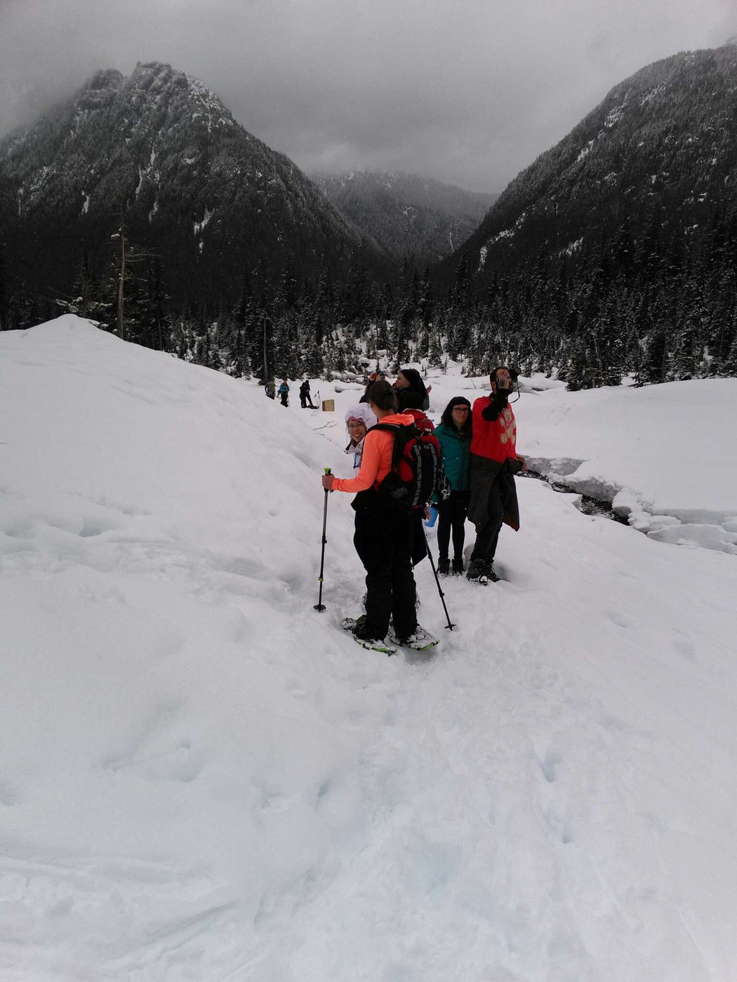 (Saw one person who had crossed the snow covered river and was sitting at the base of the avalanche zone, which is an incredibly dumb thing to do.)