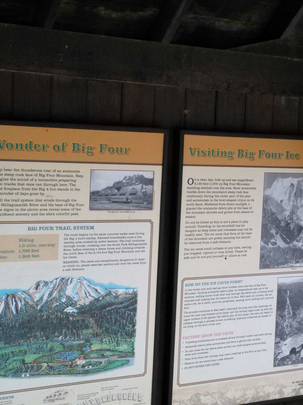 look for the display board about big four ice caves as the trail starts next to the board.