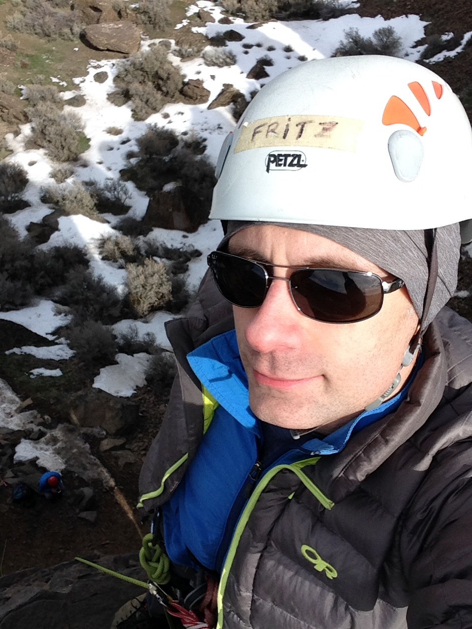 This was a Mountaineers basic climbing class SIG trip - I helped as an assistant instructor. I had to lead a few routes, which was fun; we stayed in the low-grade area at the Feathers; the hardest route I lead was probably a 5.8.