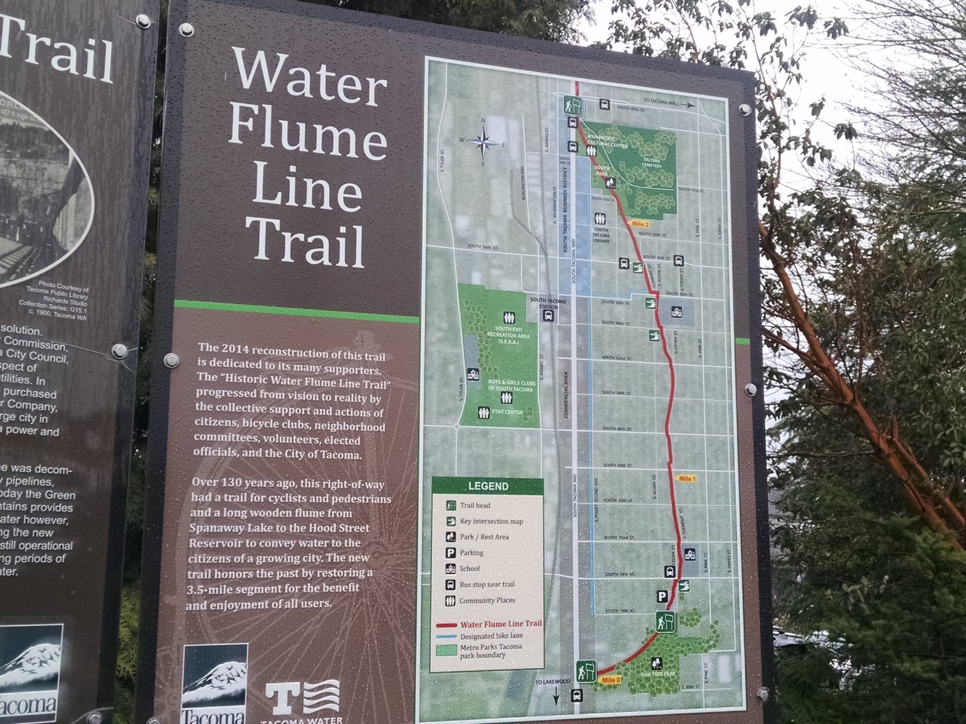 Today, we enjoyed a walk along Tacoma's Water Flume Line Trail, which roughly parallels South Tacoma Way for three and half miles. It goes through a couple of parks, but mostly traverses quiet residential areas and was not at all unpleasant.