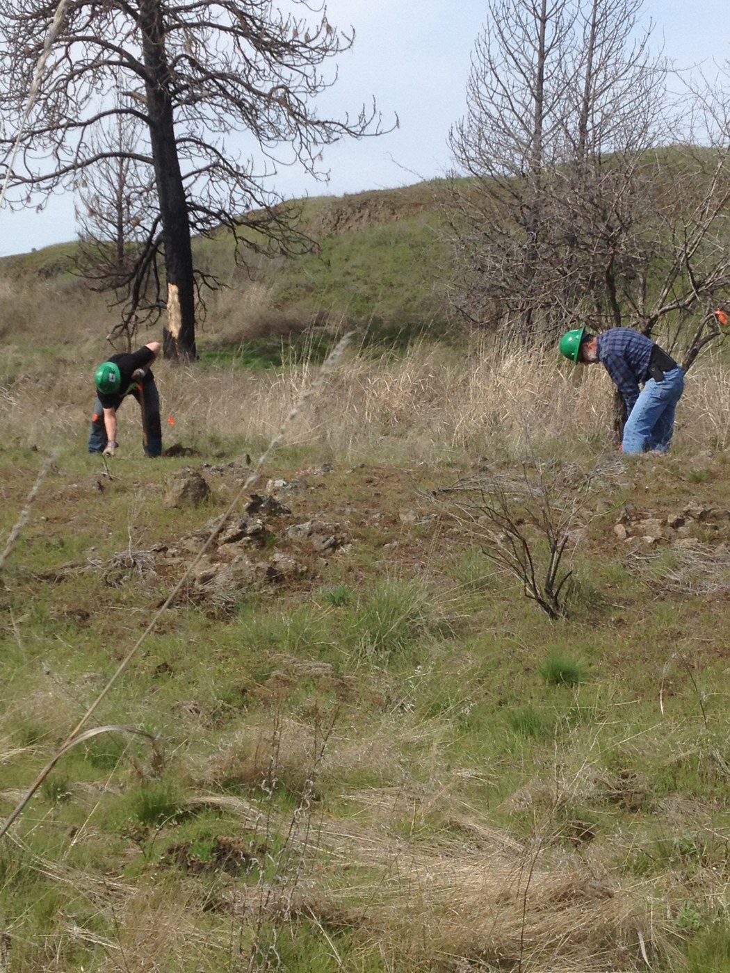 Volunteer Gary was the "rock" workhorse of the team and it seemed that the winter in Spokane had him full of energy for busting through the hardest rocks in the trail. We were all very impressed with his rock skills and by the end of the day all of the large rocks were very scared of him so much so that they just rolled under his finger tips.