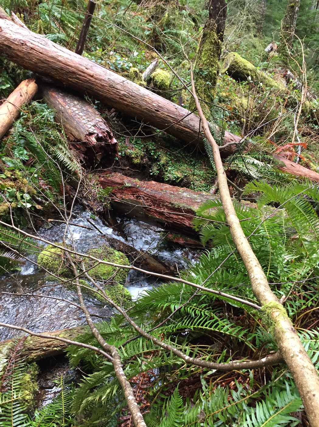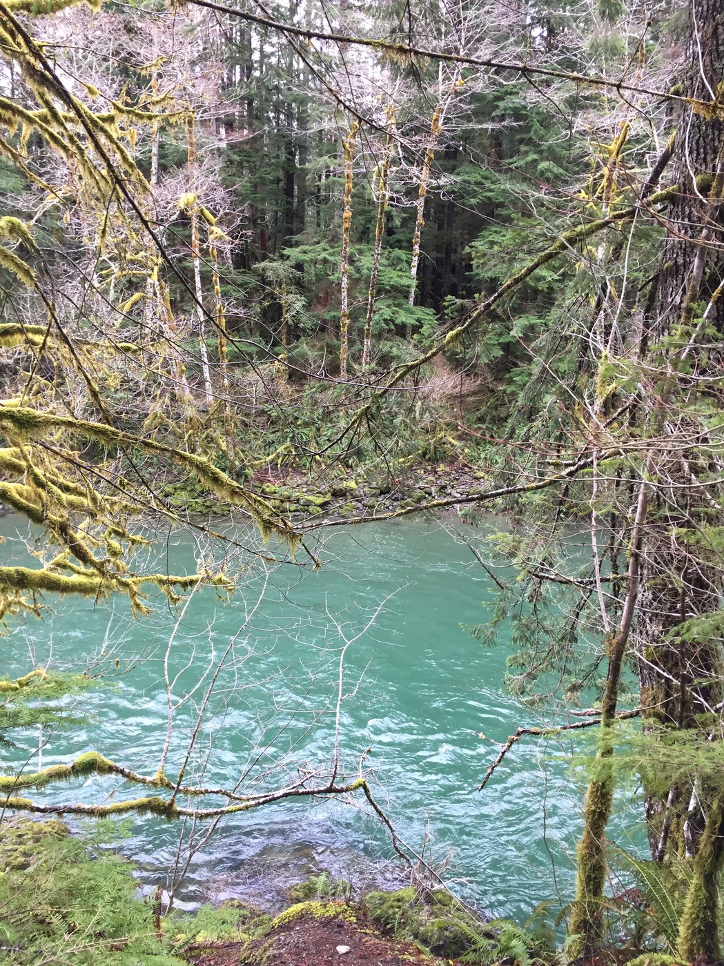 This hike is a bit of a drive, but worth it. We got to the TH around ten, and started off with just a light jacket. The views of the Sol Duc River were awesome! Once we got to the switchbacks, parts of the trail were rather overgrown with rhododendrons and there was a ton of brush all around. Several logs seem to have fallen across the trail this season, it looks like someone has cleared a few, but there were at least ten we had to climb around/over. The log bridge is out over the first stream crossing, but we were still able to cross with little difficulty. All the waterways we saw were flowing quite quickly with all the rain and snowfall lately. Most of the trail is very narrow and steep, although a few stretches are straight. About 3/4 of the way up we encountered some snow patches that were easily crossed. Shortly the snow became more prevalent and seemed to have collected on the trail, in spots drifting to about a foot deep. The trail was still narrow and had a bit of a slant to it, so after fighting through this crunchy snow for about forty five minutes we turned around due to concerns about slipping off the steep side. We'll definitely be trying this trail again once the snow melts, we had great views of the other peaks in the distance and the forest made for a calm and peaceful feeling!
