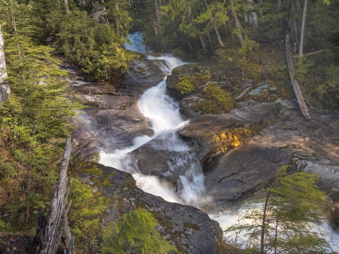 I believe that I am the first WTA member to hike to these falls. To reach them, hike up the Eight-mile/Squire Pass trail past 3 O'clock rock. When you reach the first creek, bushwhack downhill until the creek joins Eight Mile Creek (see pictures). It is a steep bushwhack, but it isn't far.