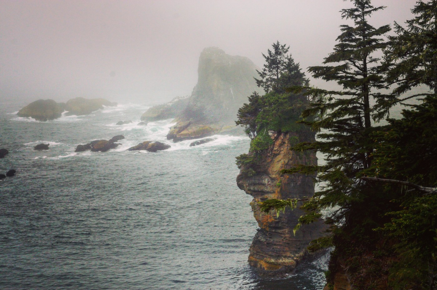 Although we drove for almost an hour in white out fog to reach the trailhead and hiked through some residual gloom on the trail, we lucked out with visibility once we reached Cape Flattery's first viewpoint. Still sporting a thick veil of mist, the weather broke just enough that not only were we treated to great views of the surrounding sea stacks, but we also discovered that the cove was full of sea otters, which is secretly how I hope every hike, even those lacking bodies of water or rational places for otters to appear, will end.